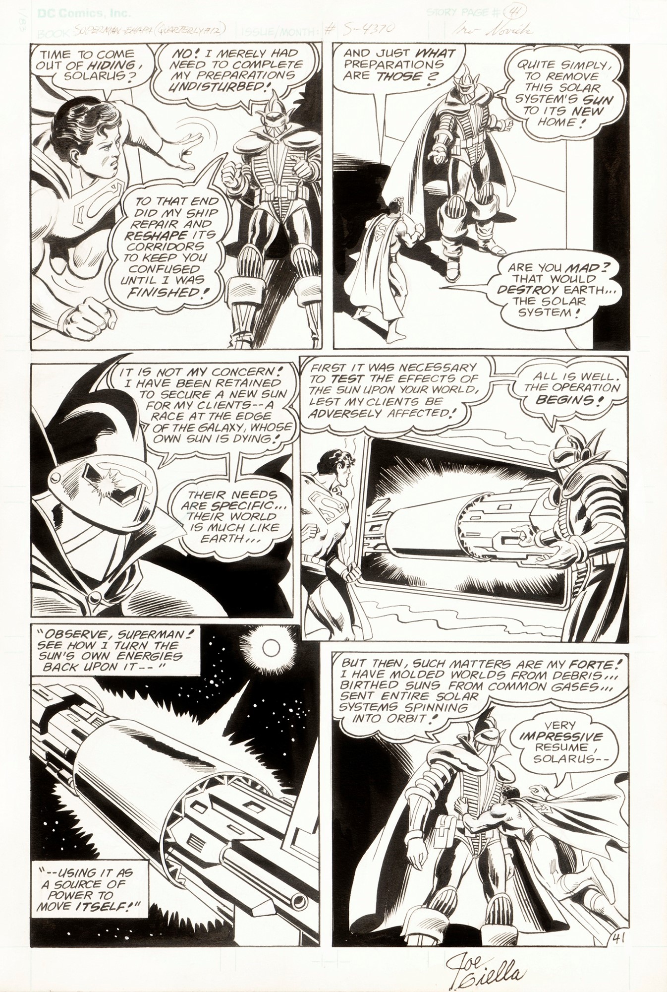 Tavola originale realizzata da Novick per Superman Quarterly n. 12 a pag. 41 dalla DC nel 1985. Chine di Joe Giella. Timbro editoriale al retro. Firmata.