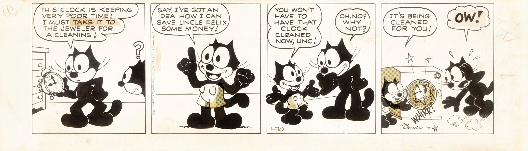 Striscia giornaliera realizzata da Oriolo del 30/01/1955 per "Felix the Cat". Firmata.