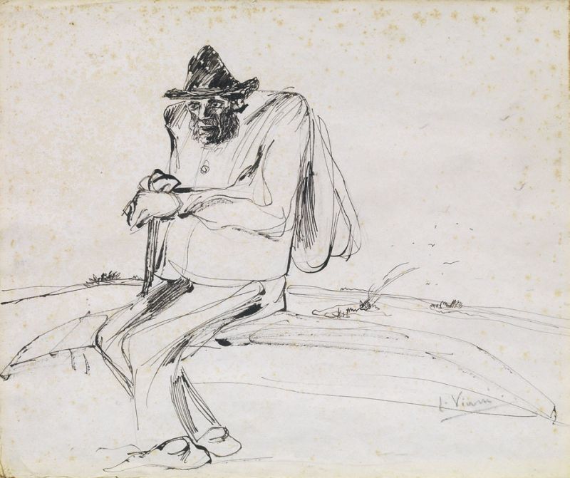 Lorenzo Viani Viareggio (Lu) 1882 - Ostia (Roma) 1936 Mendicante China su carta, cm. 34,5x41,4 Firma in basso a destra: L. Viani.