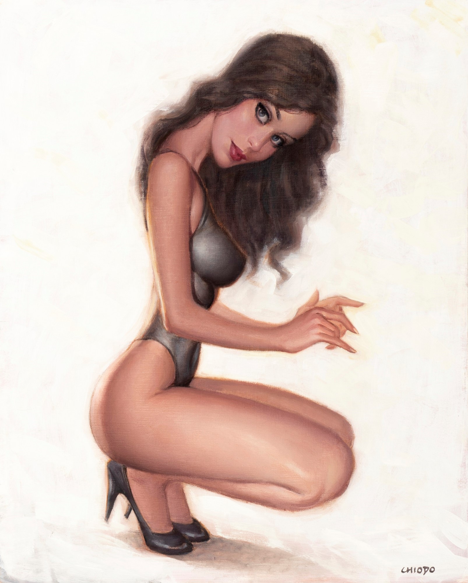 Dipinto originale realizzato da Chiodo nei primi anni 2000, una delle sue seducenti e sinuose pin-up. Firmato.