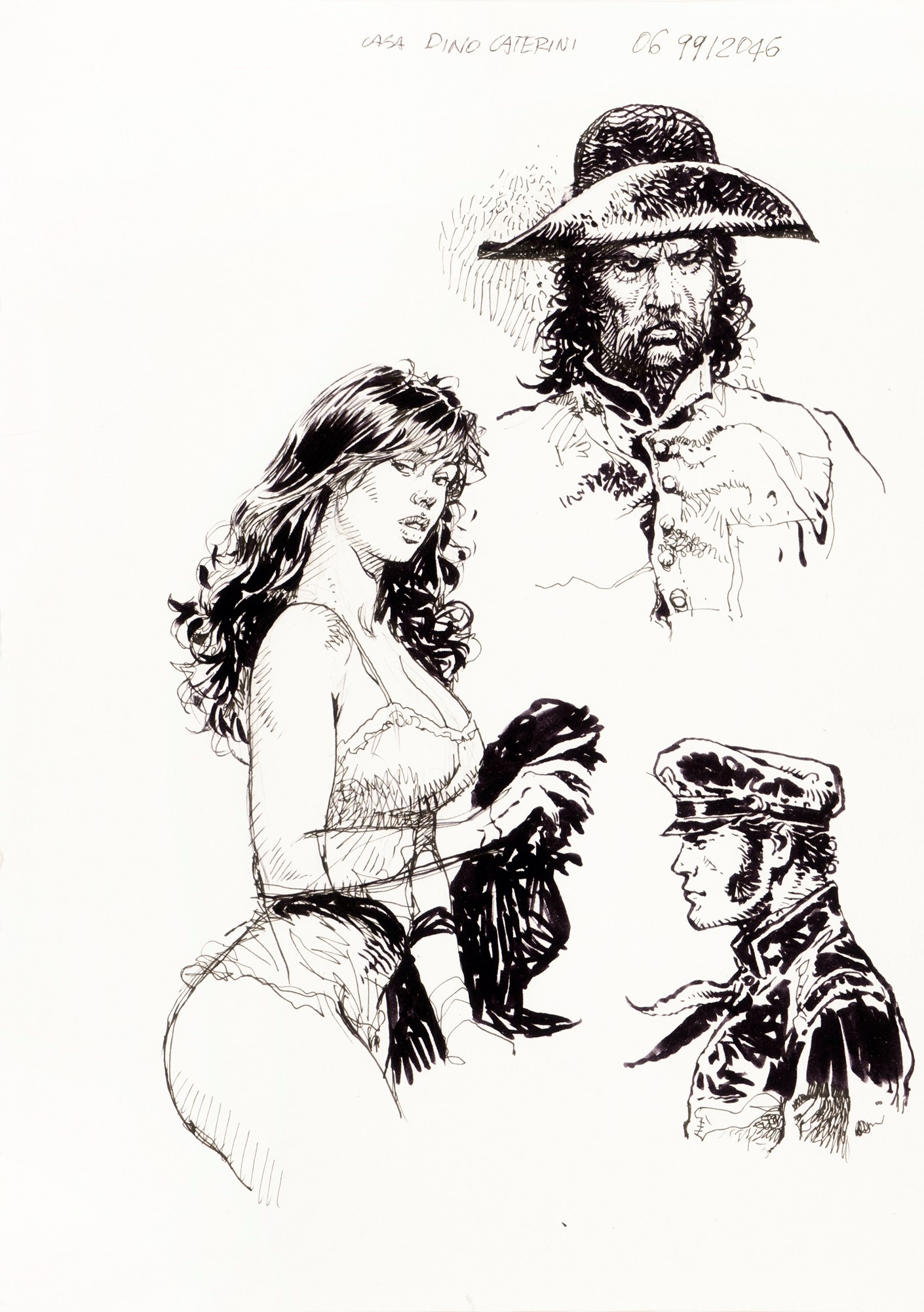 Illustrazione originale realizzata da Serpieri come omaggio all'erotismo e all'avventura, i due cardini della sua arte, il Corto Maltese dell'amico e collega Pratt e la sua Druuna.