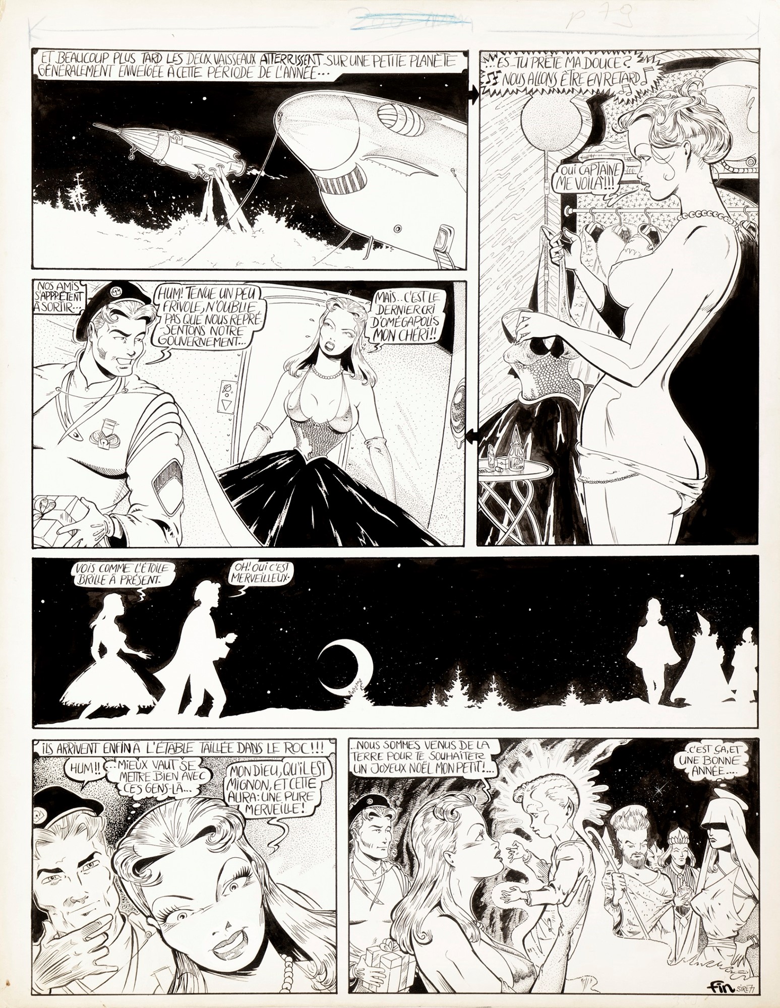 Tavola originale realizzata da Sire per "Menace diabolique", pubblicata per la prima volte sulle pagine della rivista francese Métal Hurlant nel 1977 e successivamente in volume da Humanoïdes Associés nel 1979. Firmata e datata.
