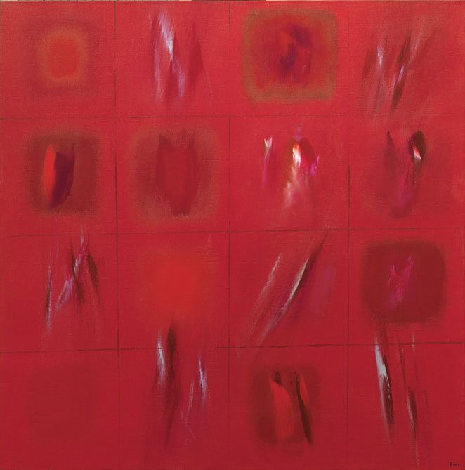 Ennio Finzi Venezia 1931 Architettura del colore in rosso Acrilico su tela,...