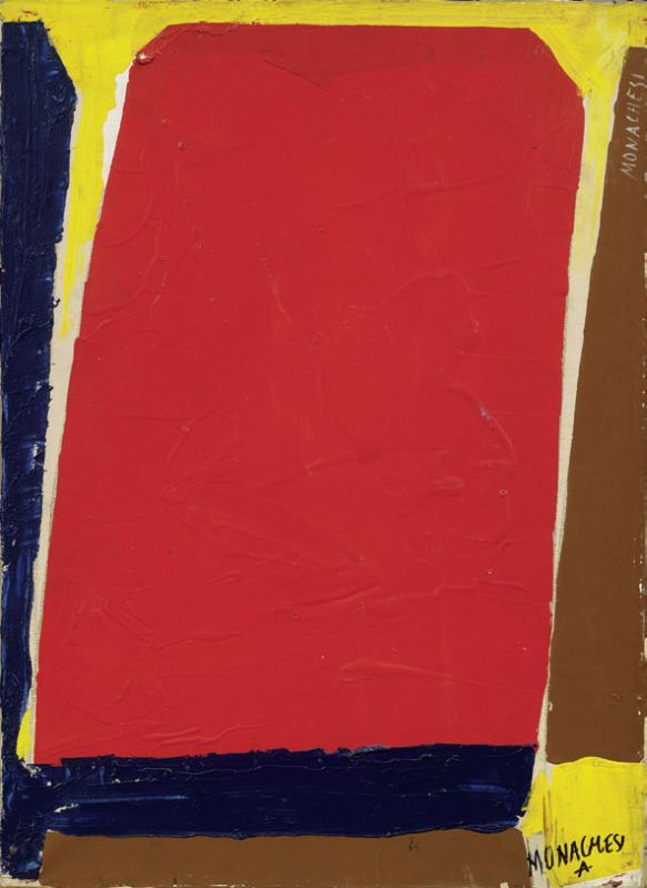 Sante Monachesi Macerata 1910 - Roma 1991 Il muro, 1950 Acrilico su tela, cm. 70x50,2 Firma in basso a destra e sul lato destro: Monachesi. Certificato su foto di Luce e Donatella Monachesi, Roma, 15 novembre 1997, con n. ACSND9.