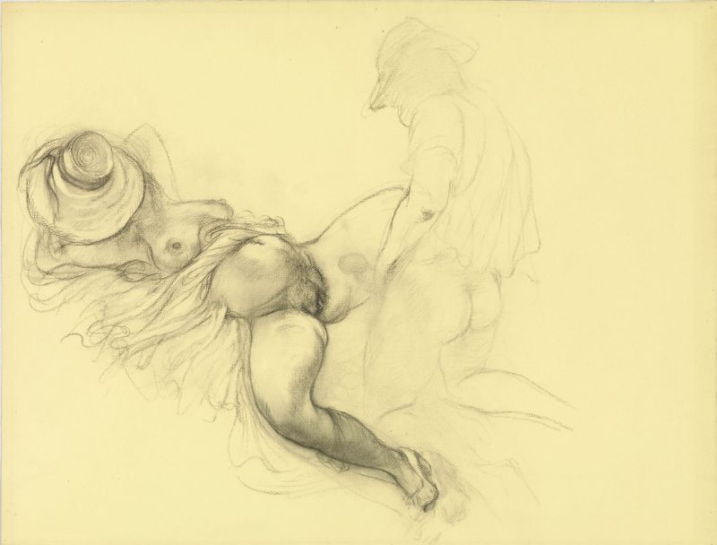 George Grosz Berlino 1893 - 1959 Amanti, 1940 Matita su carta, cm. 48,3x63,4...