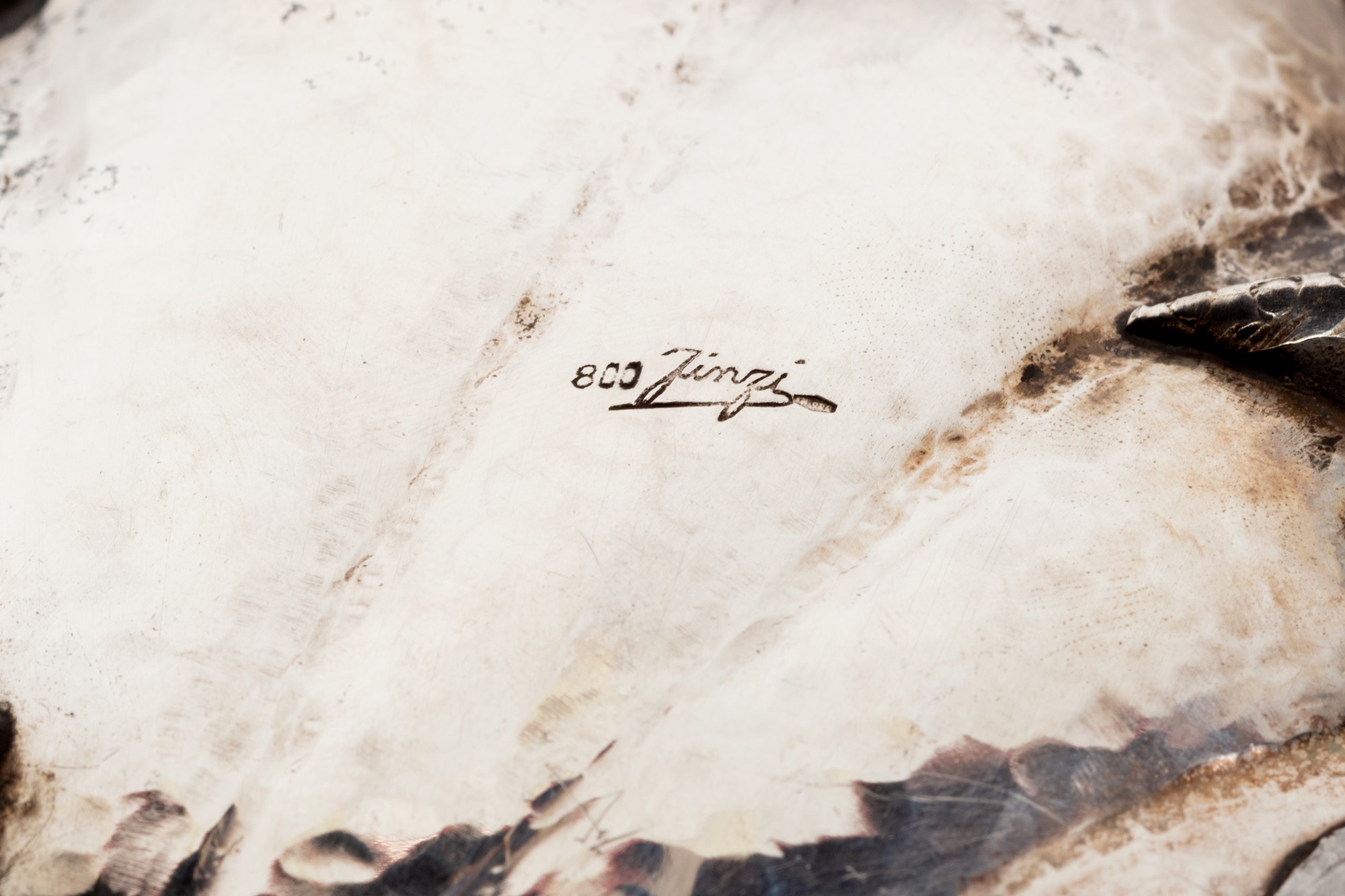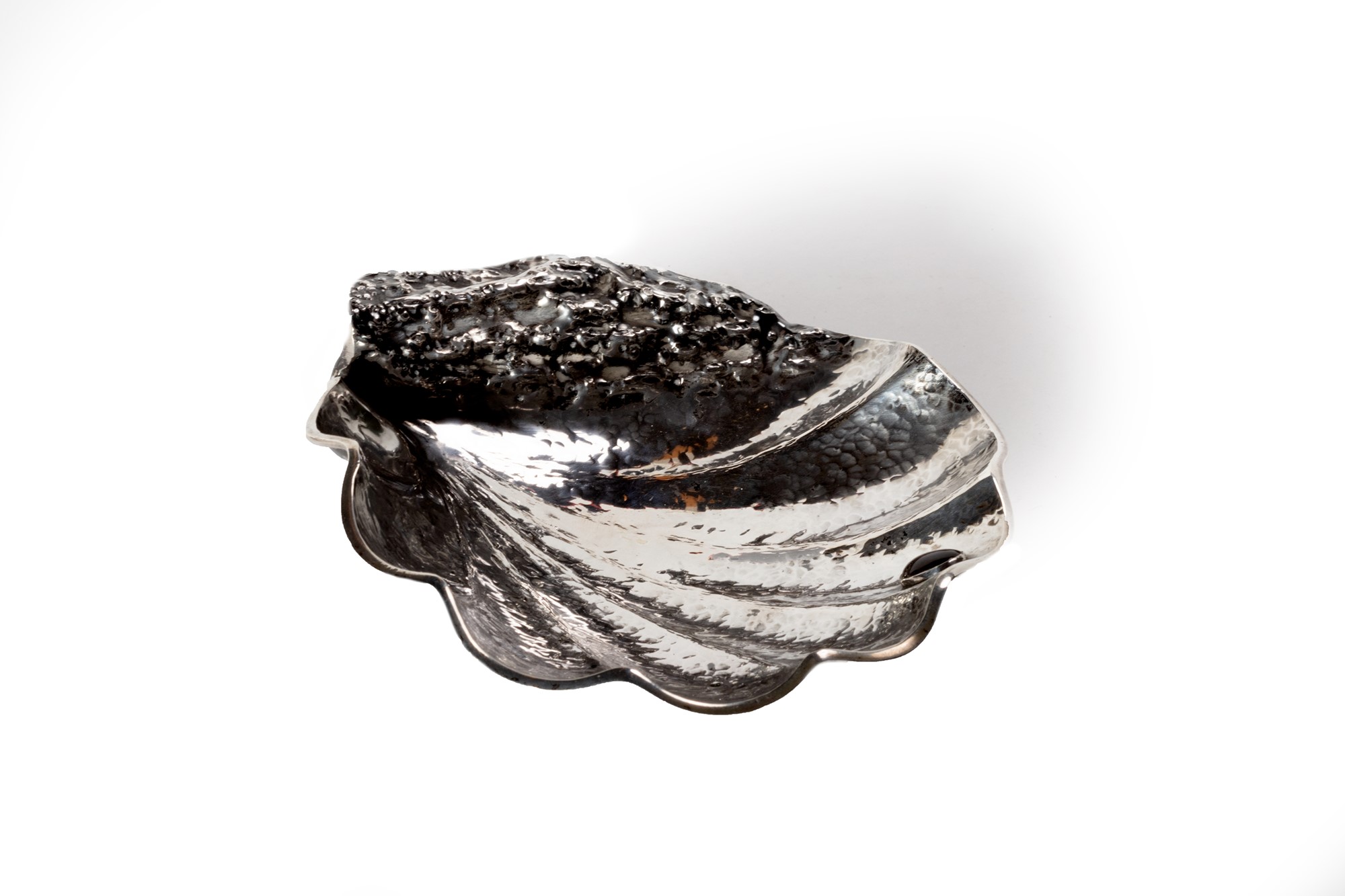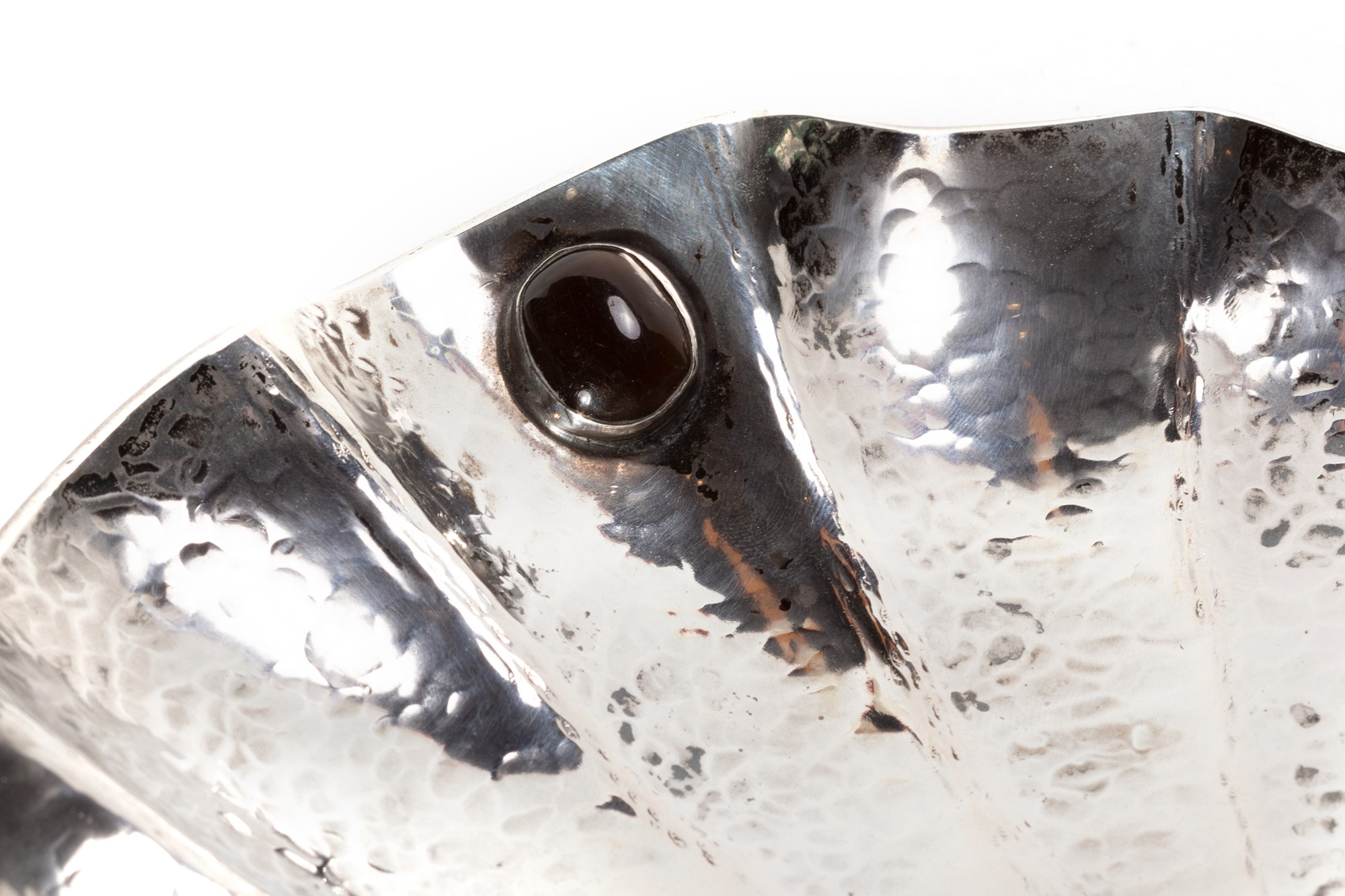 Coppetta in argento a forma di conchiglia con una pietra dura incastonata, firmato Finzi