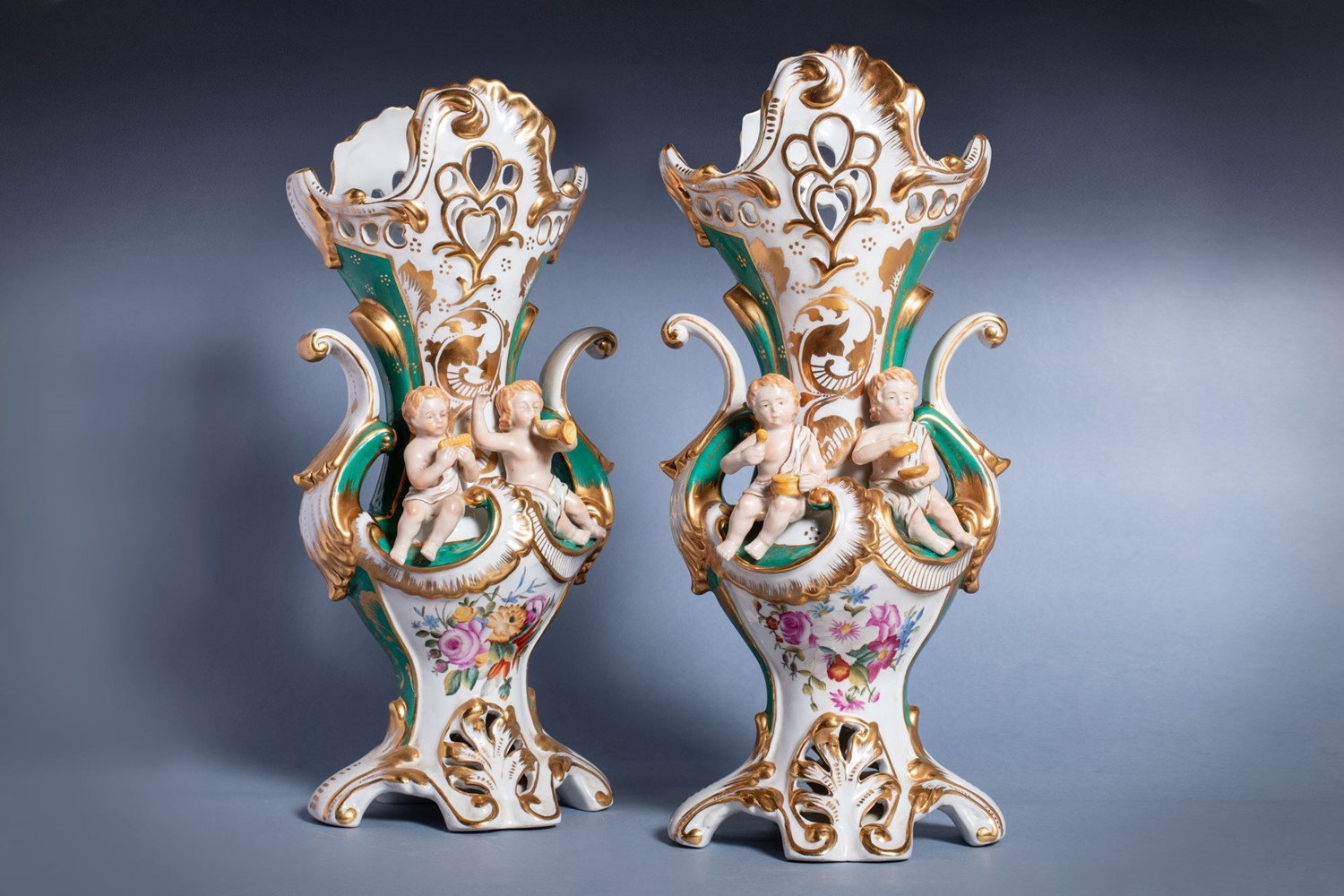 Coppia di vasi in porcellana, in stile Luigi Filippo, secolo XX