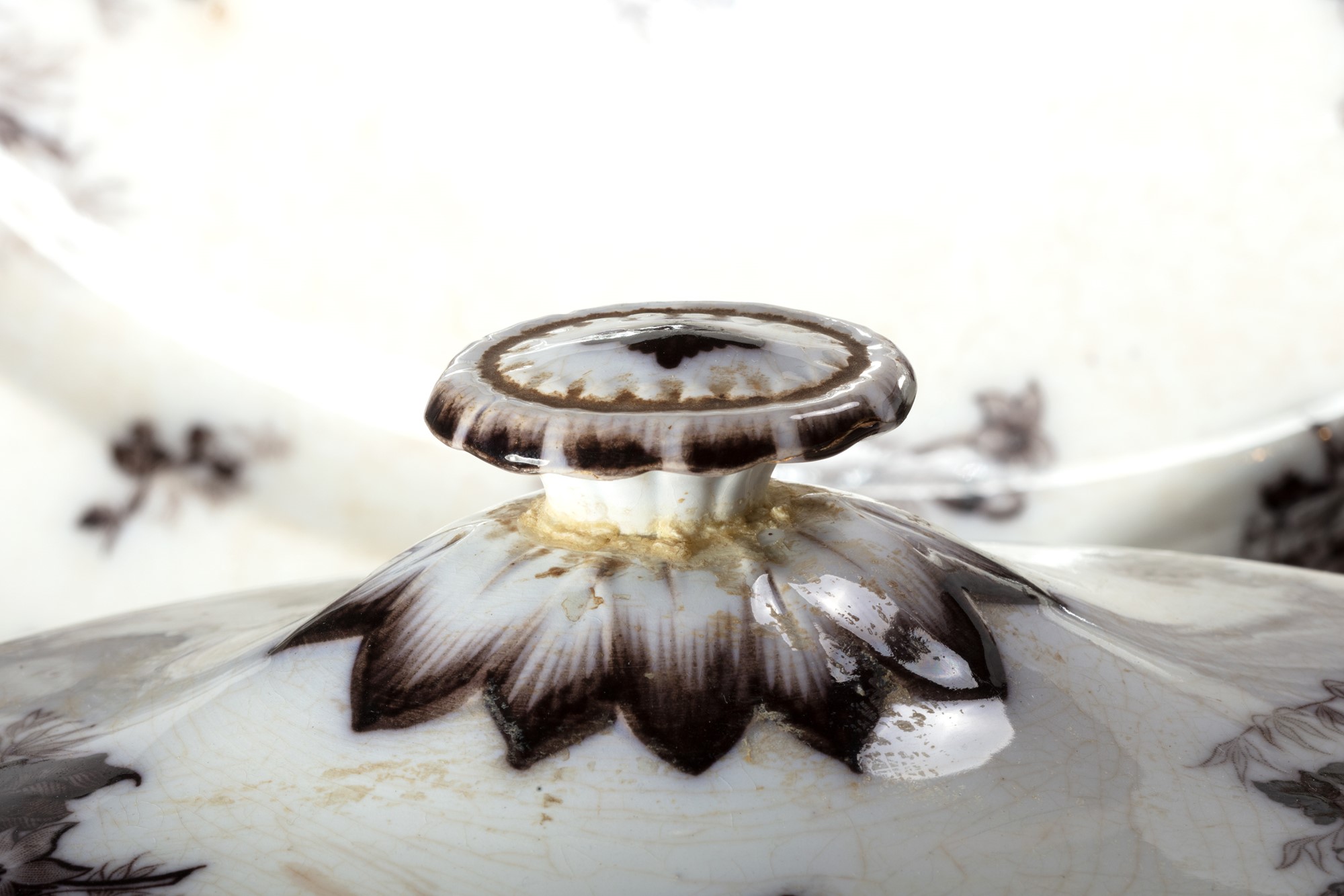 sbeccatura sul bordo dell'insalatiera; danni e restauri su una delle zuppieresbeccatura sul bordo dell'insalatiera; danni e restauri su una delle zuppiere