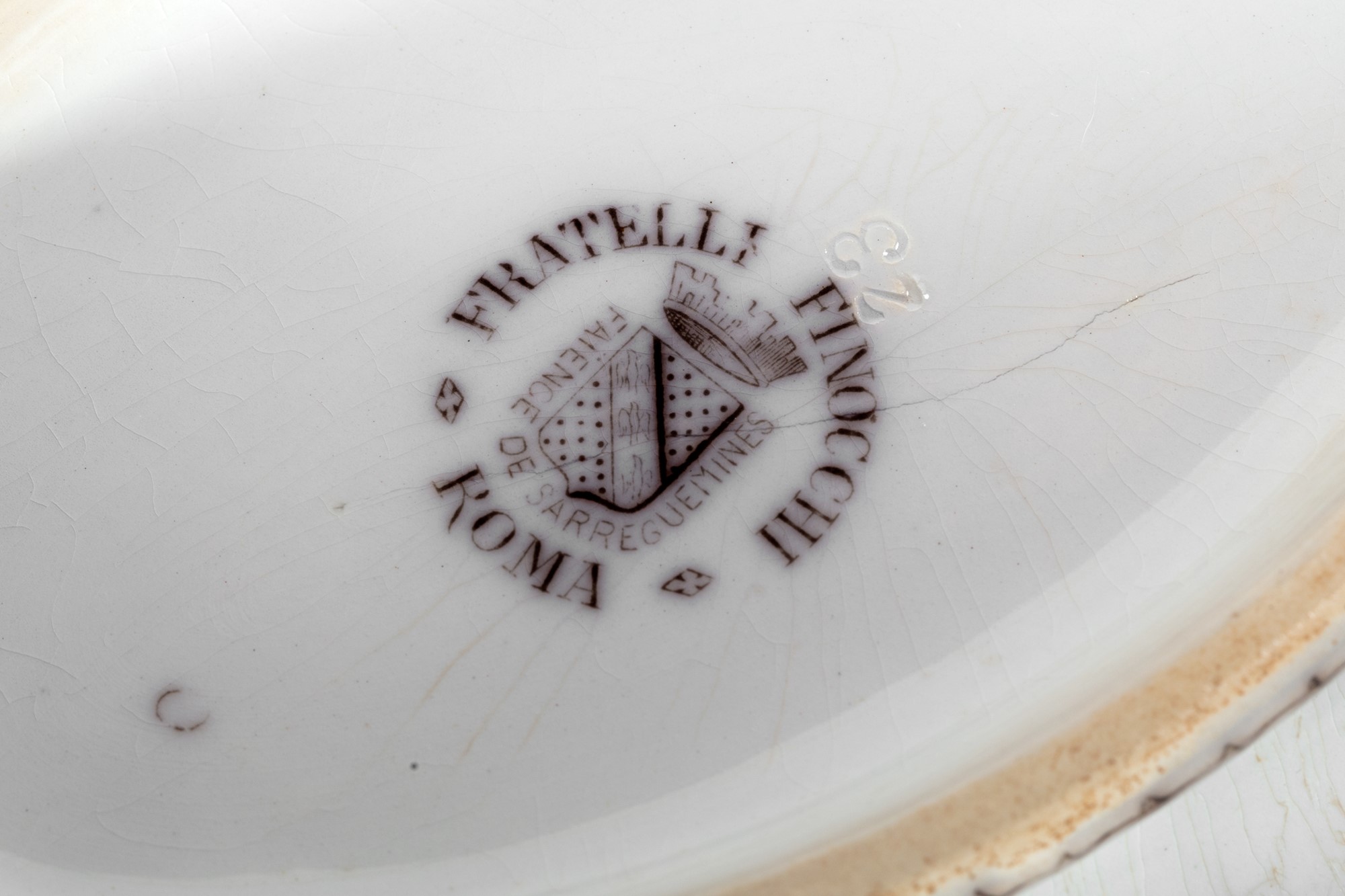 Lotto composto da due zuppiere, una insalatiera e un piatto da portata in ceramica, manifattura Sarreguemines, Francia fine secolo XIX