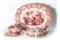 Lotto composto da un grande piatto da portata, una zuppiera con vassoio e una legumiera in porcellana bianca e rossa, secolo XX