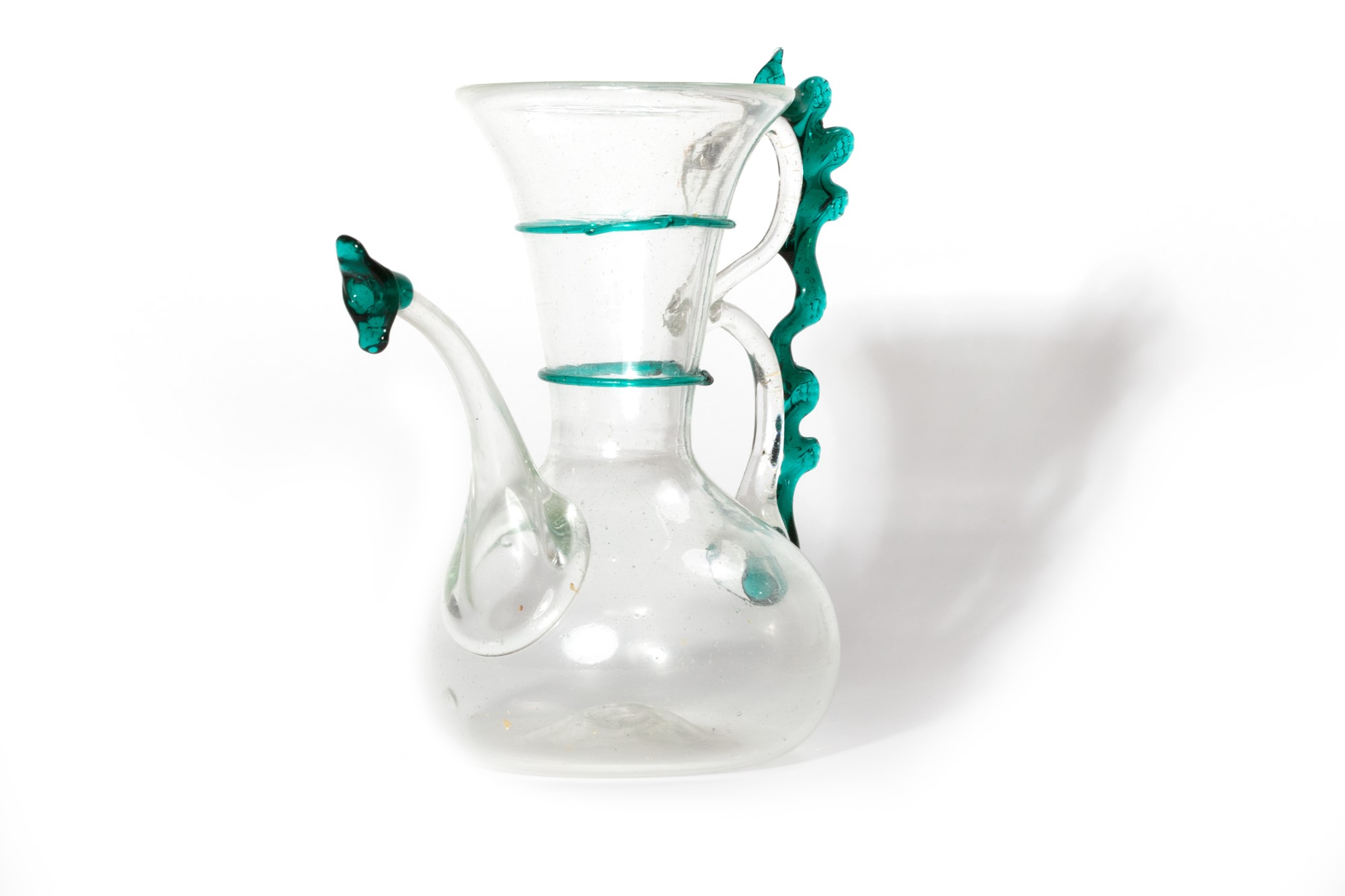 una coppia con dorature e una singola in vetro soffiato e applicazioni in pasta vitrea verdeuna coppia con dorature e una singola in vetro soffiato e applicazioni in pasta vitrea verde
