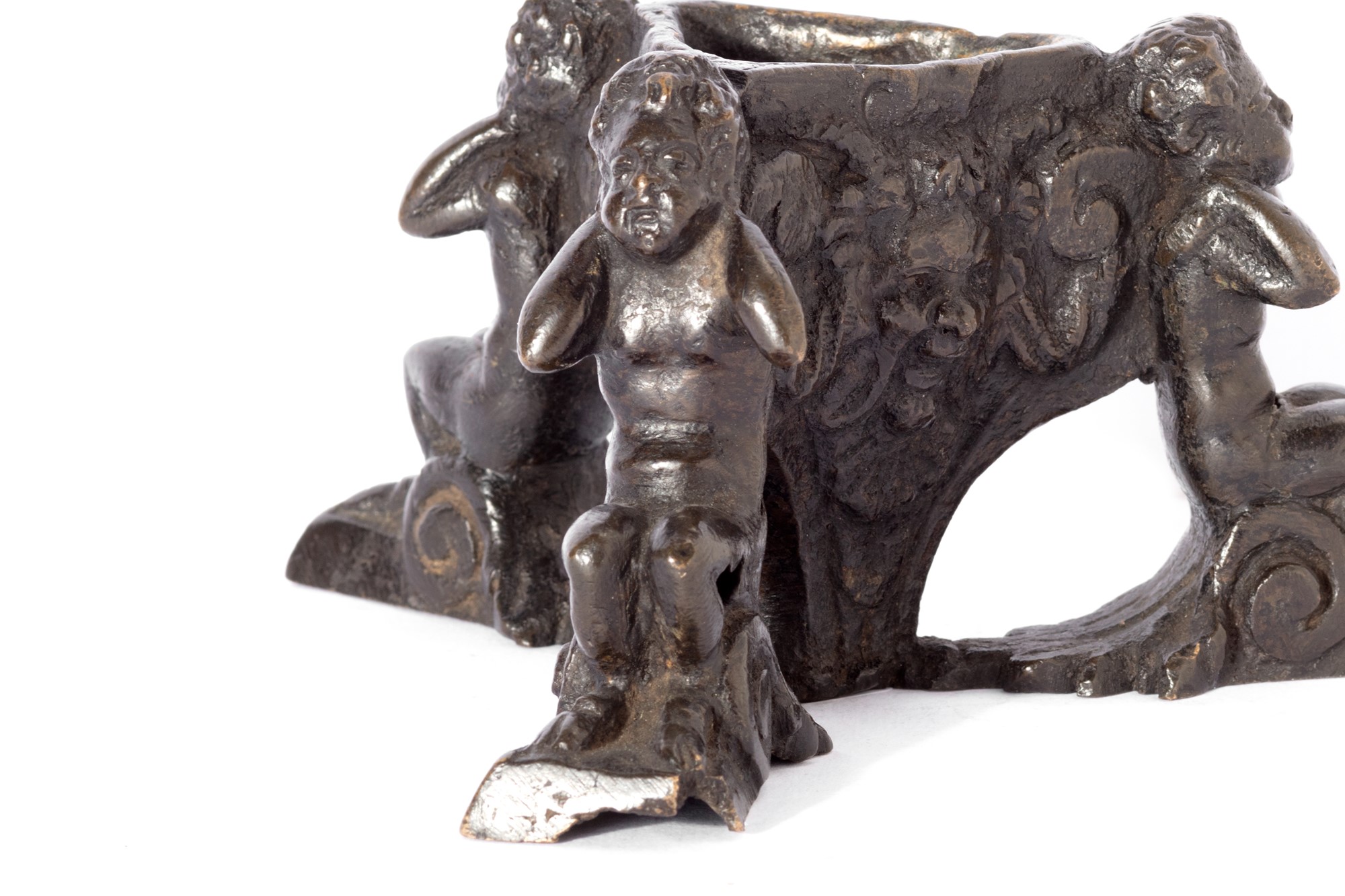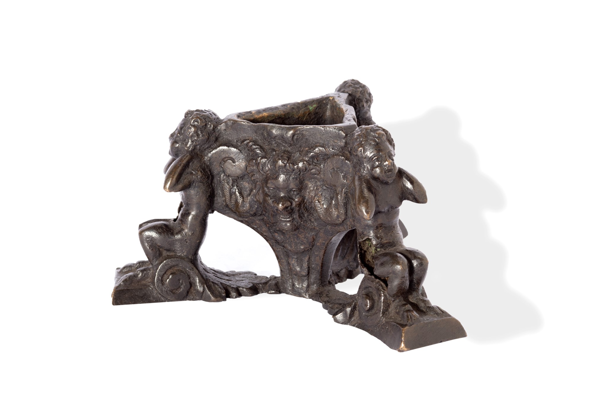 Scuola dell'Italia settentrionale, secolo XVI - Calamaio in bronzo a tre piedi con satiri e mascheroni