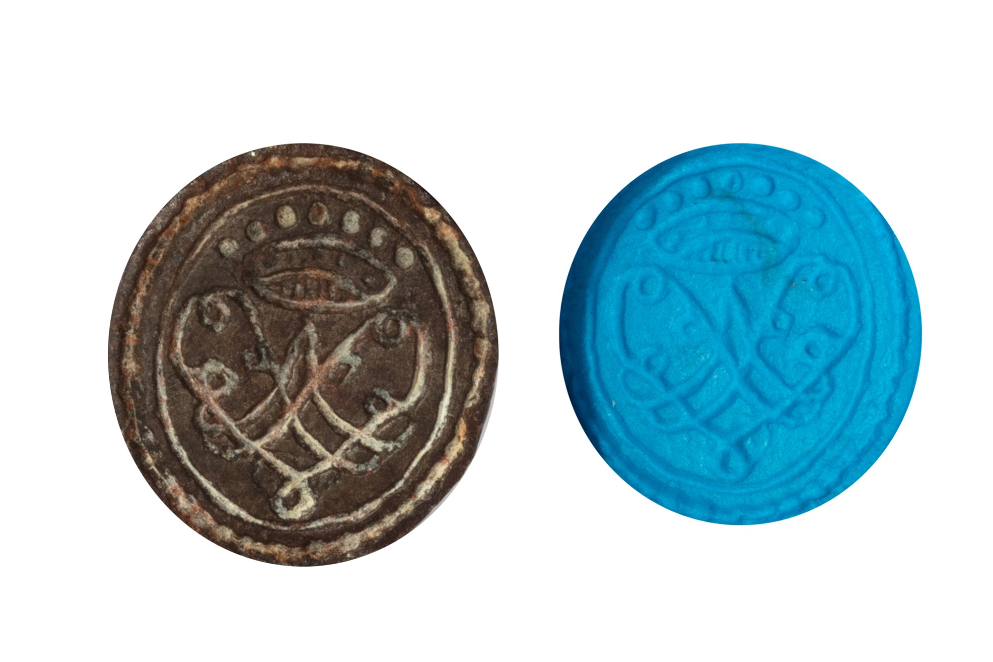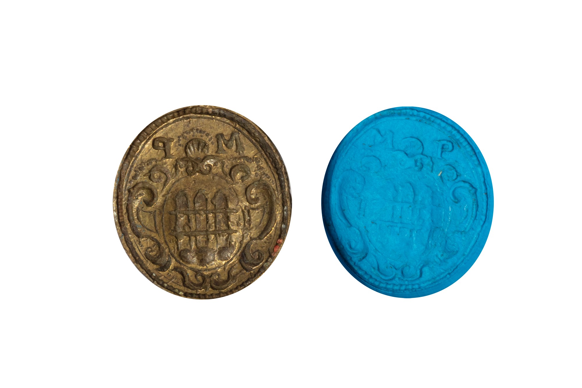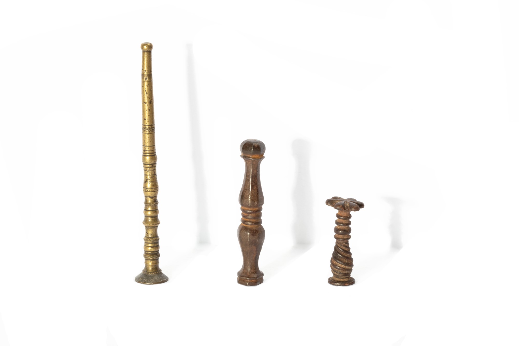 Lotto composto da tre sigilli di cui due in ferro e uno in bronzo, con stemmi nobiliari, secoli XVII - XVIII