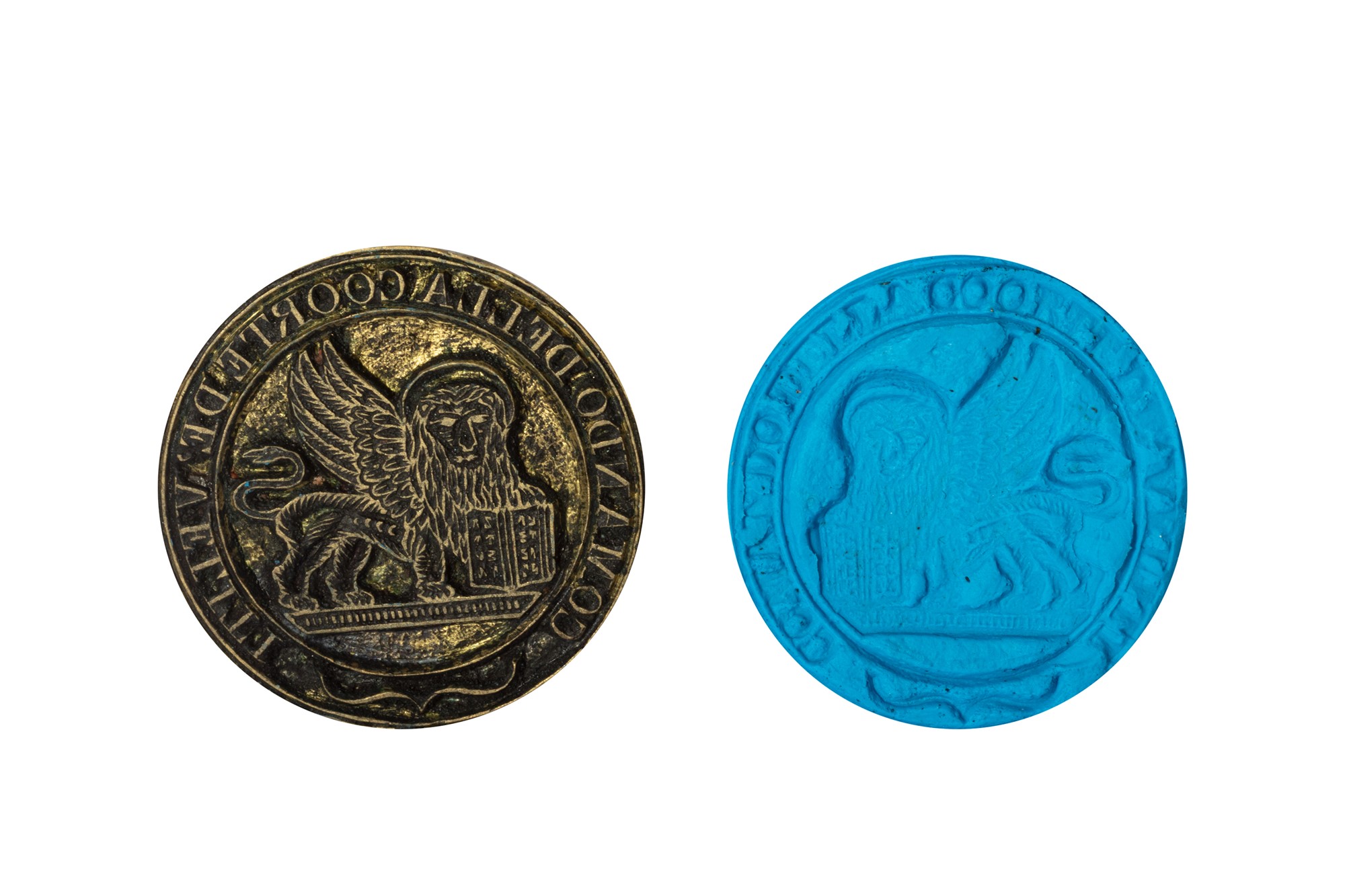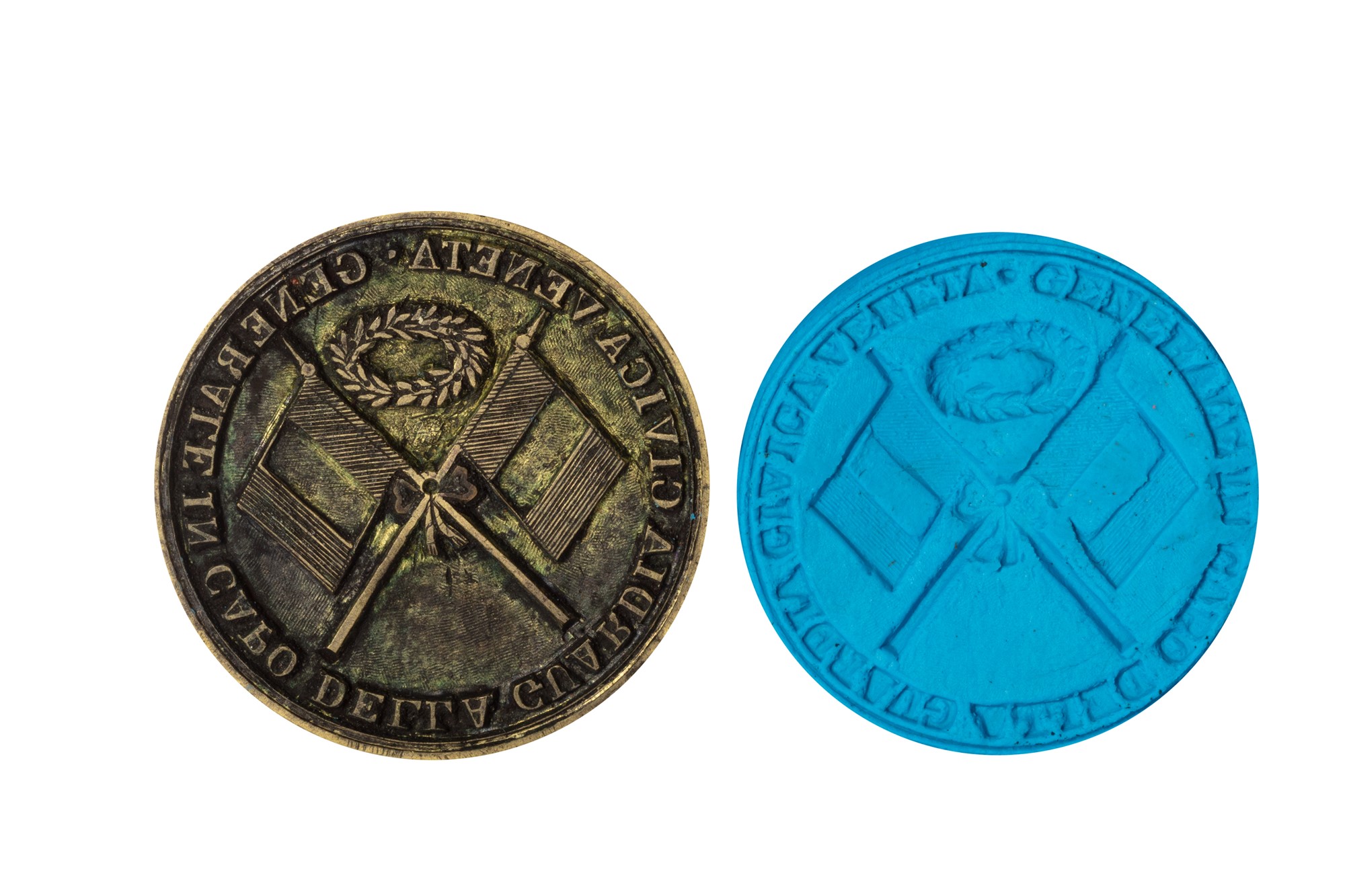 uno con stemma di San Marco e iscrizione Comando della Coorte de Veliti; uno con due bandiere incrociate e iscrizione Generale Capo della Guardia Civica Veneta; uno con monogramma CFBN entro serto di alloro