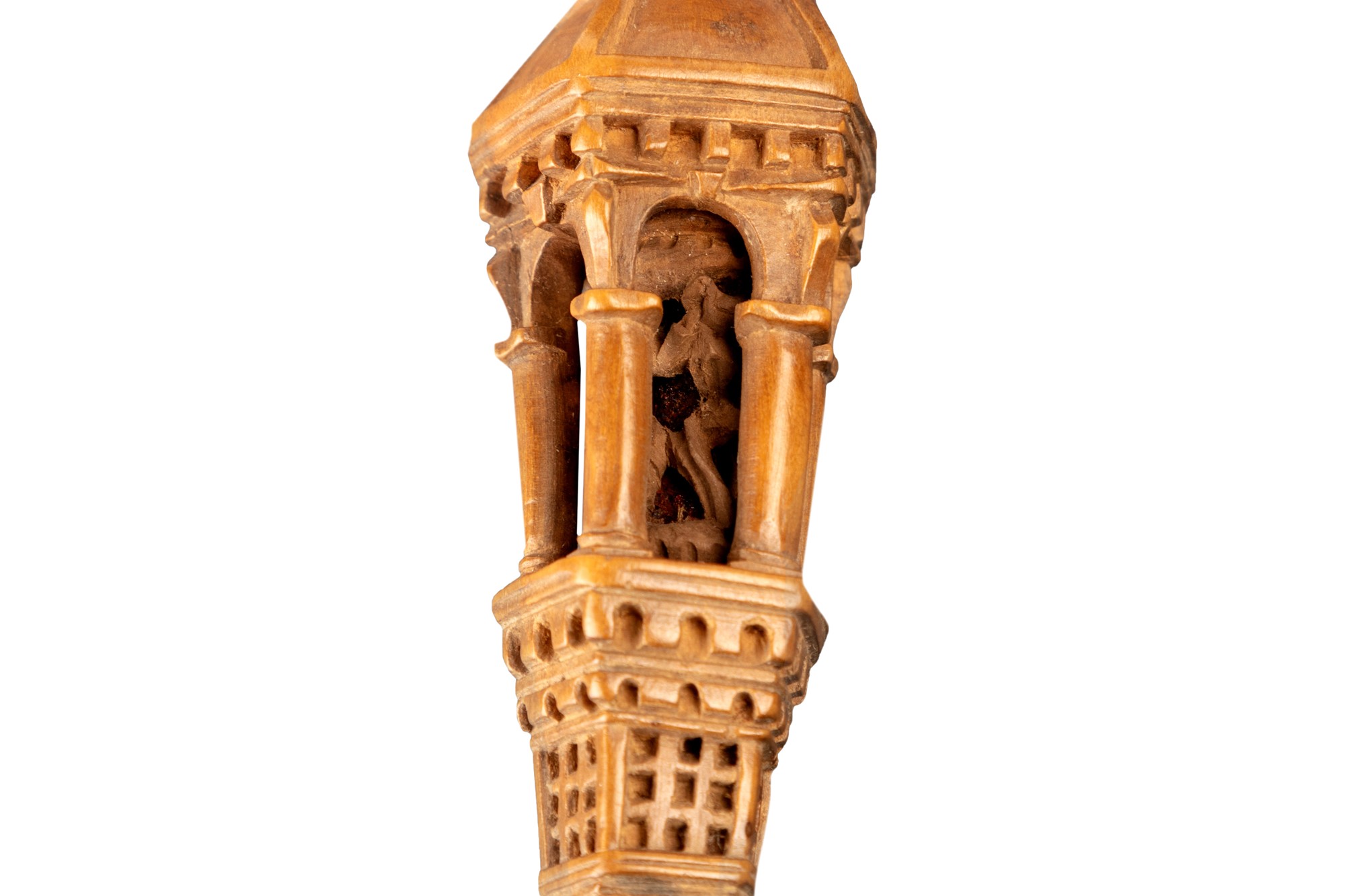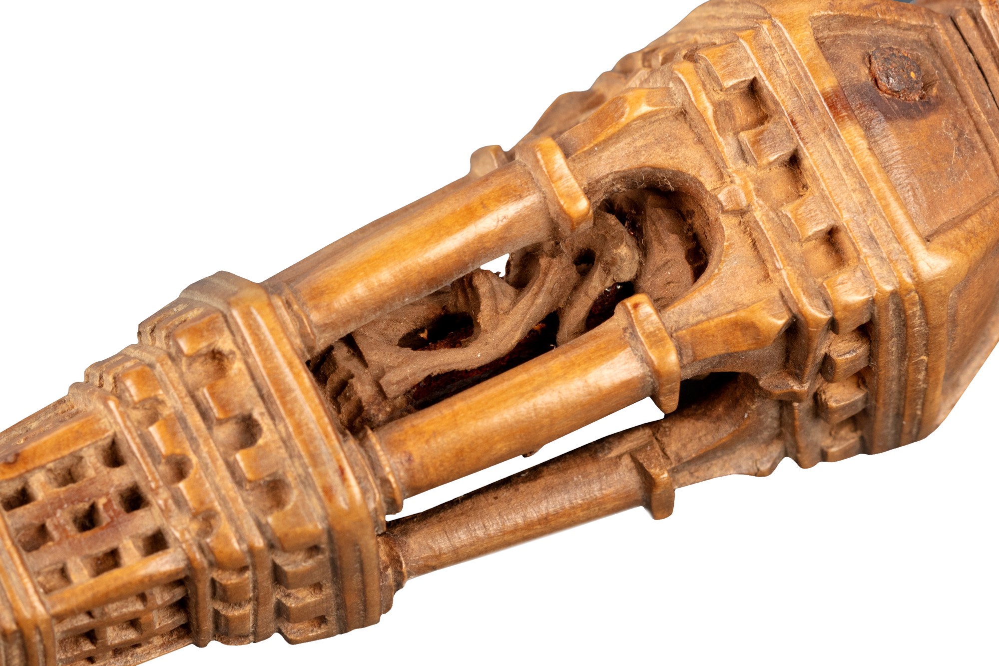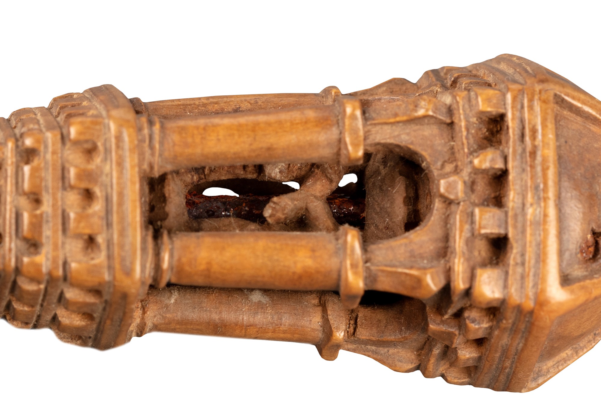 Lotto di due antiche roncole con manico in bosso finemente intagliato