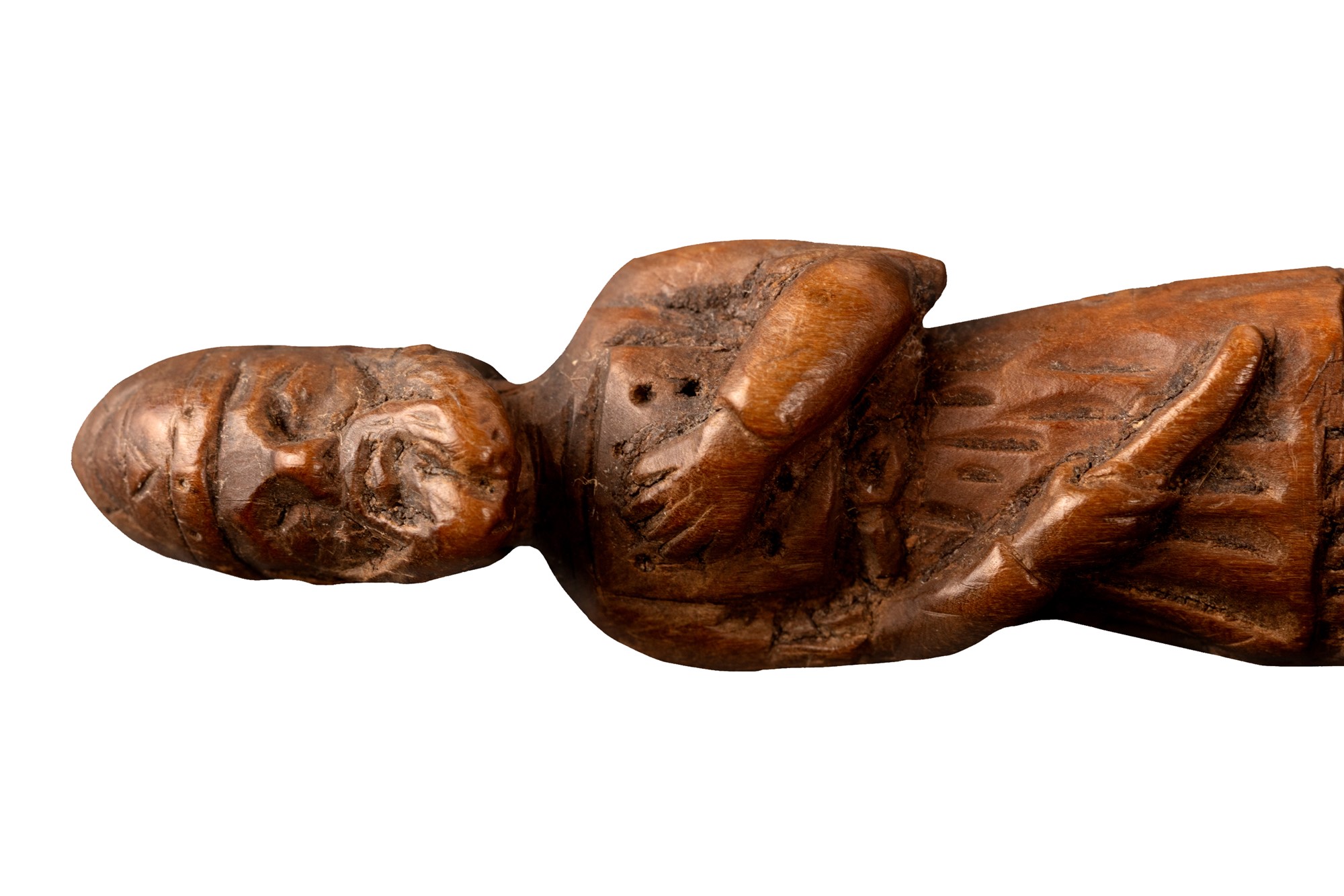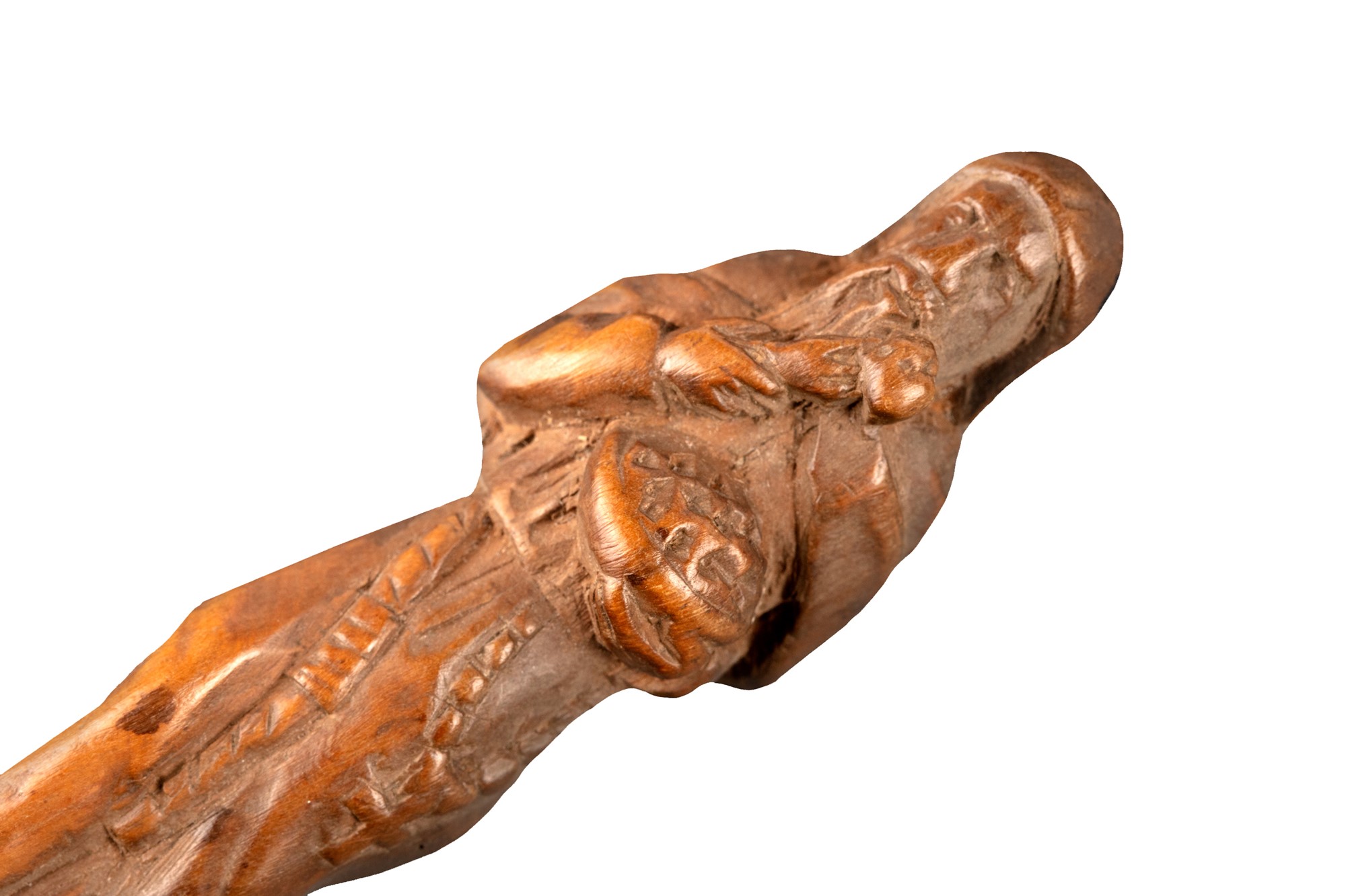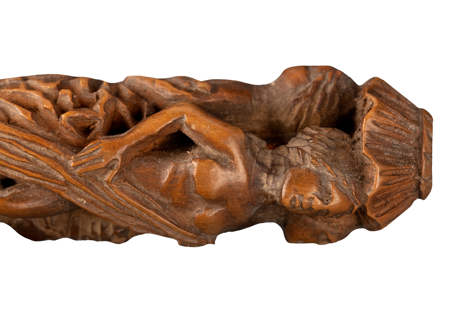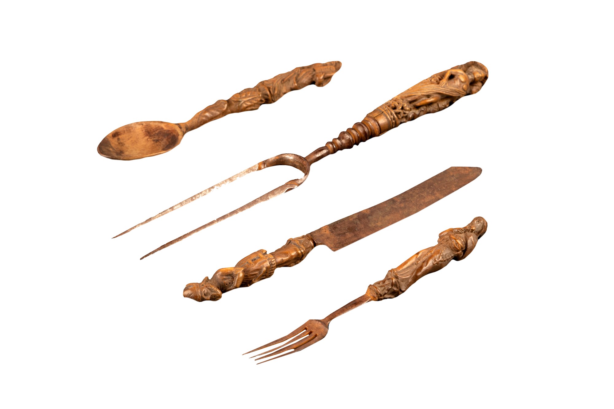 Lotto di quattro posate con manico in bosso finemente intagliato, secolo XVII