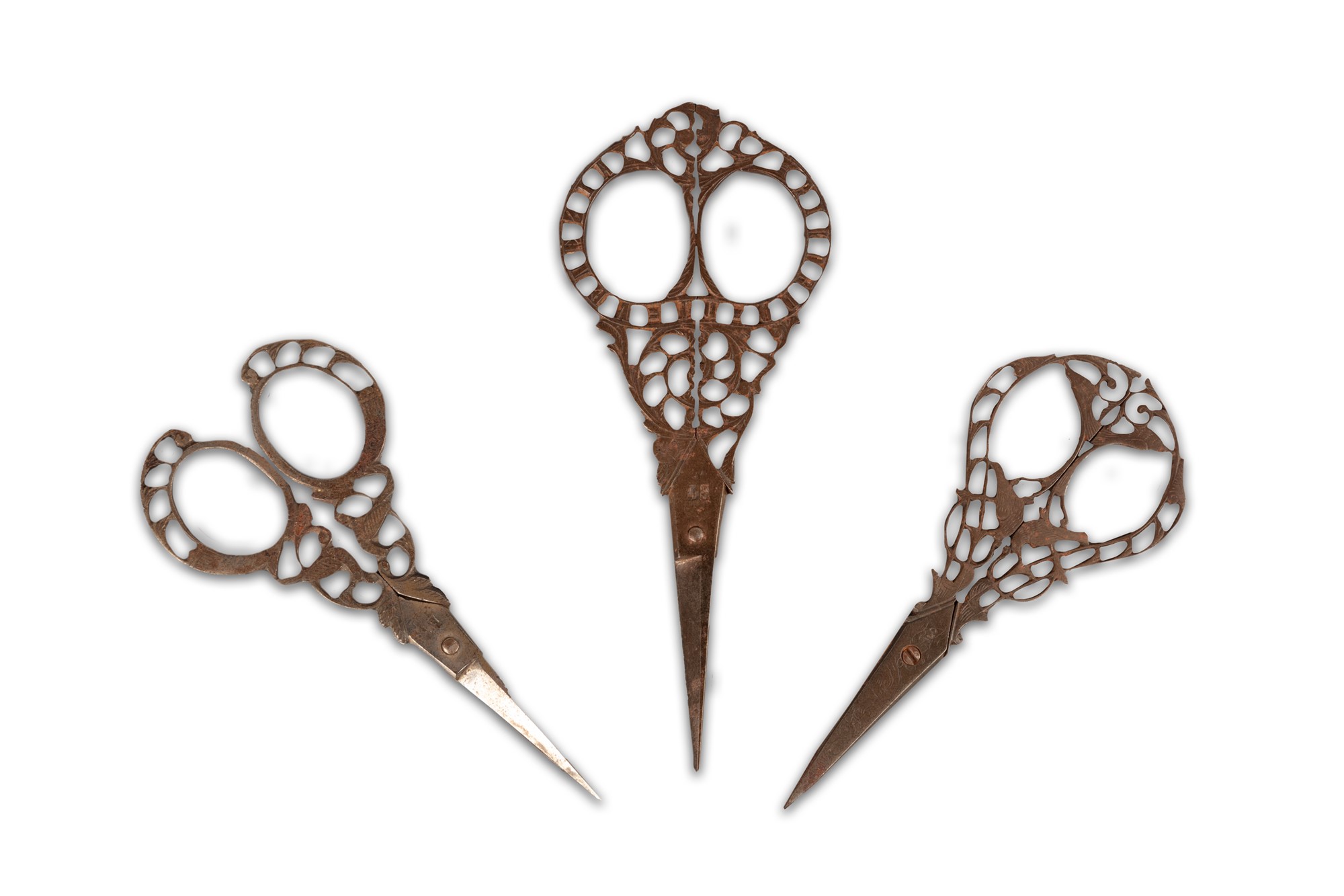 Lotto 628 | Lotto di tre forbicine da cucito in ferro, secolo XIX