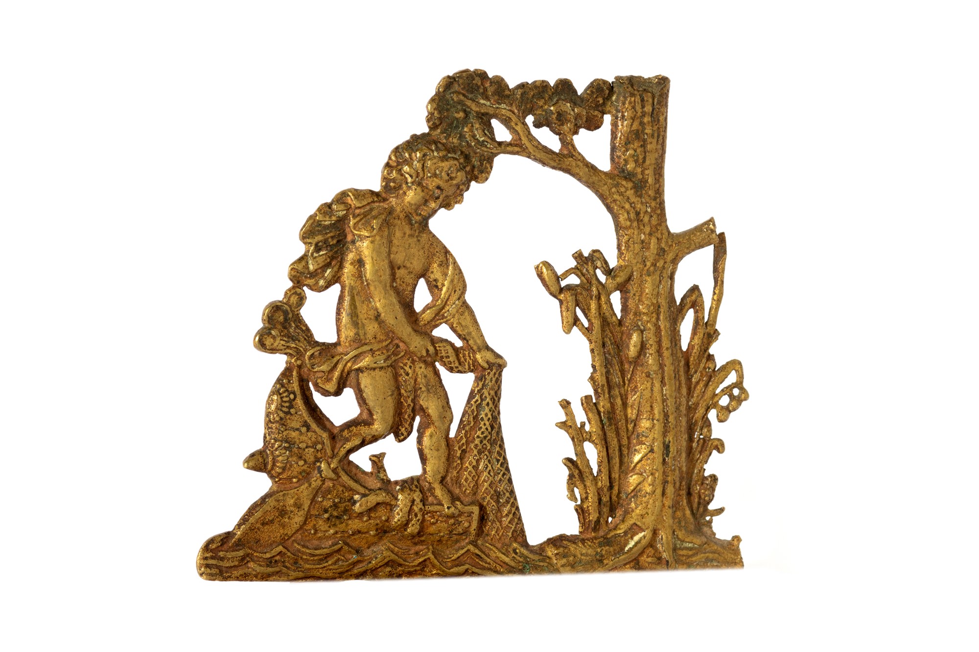 Placca in bronzo raffigurante putto che pesca, secolo XVI