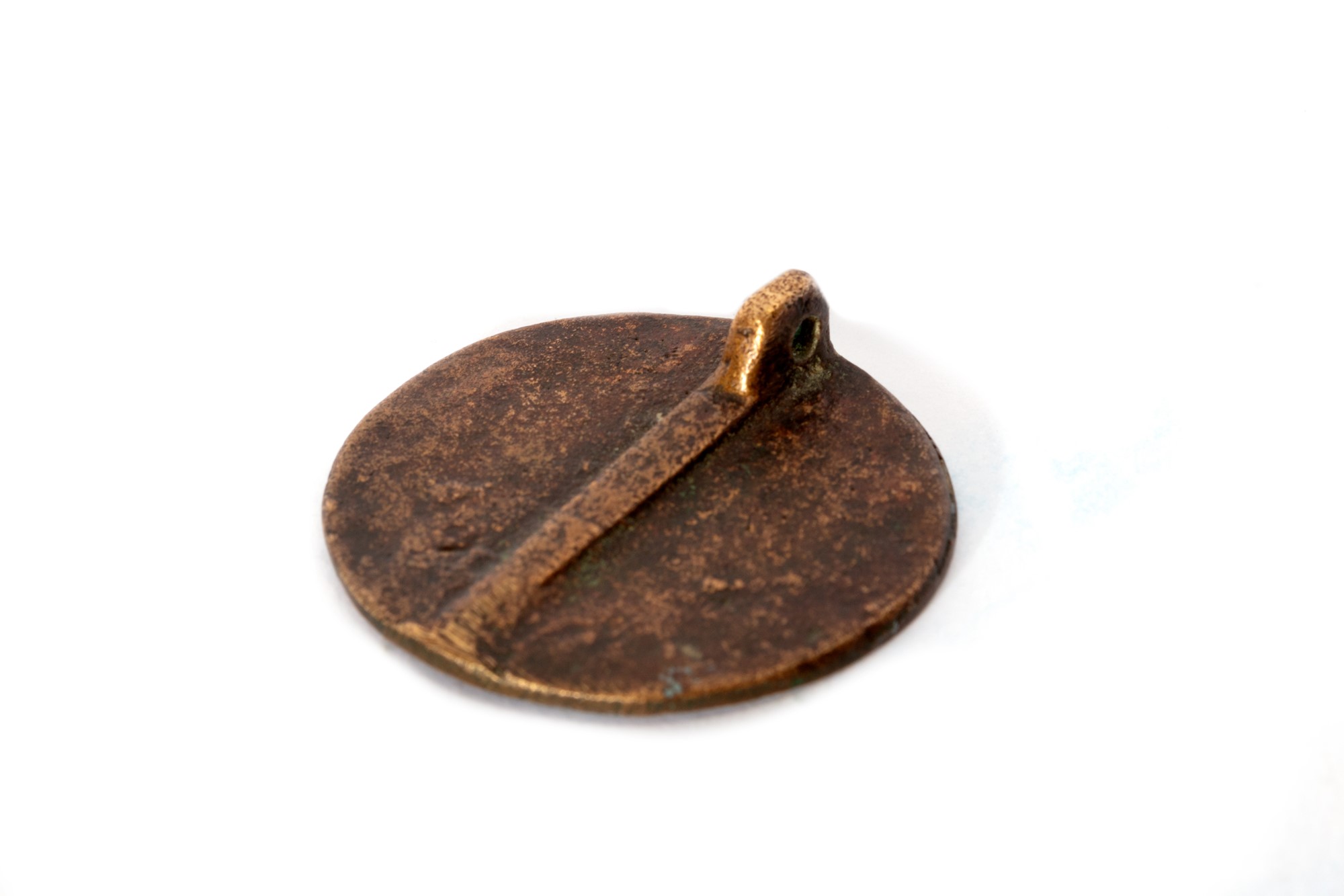 Sigillo circolare in bronzo con iscrizione e stemma raffigurante Madonna con Bambino tra due gigli nella parte superiore e cavaliere tra due stelle nella parte inferiore, secoli XIV -XV