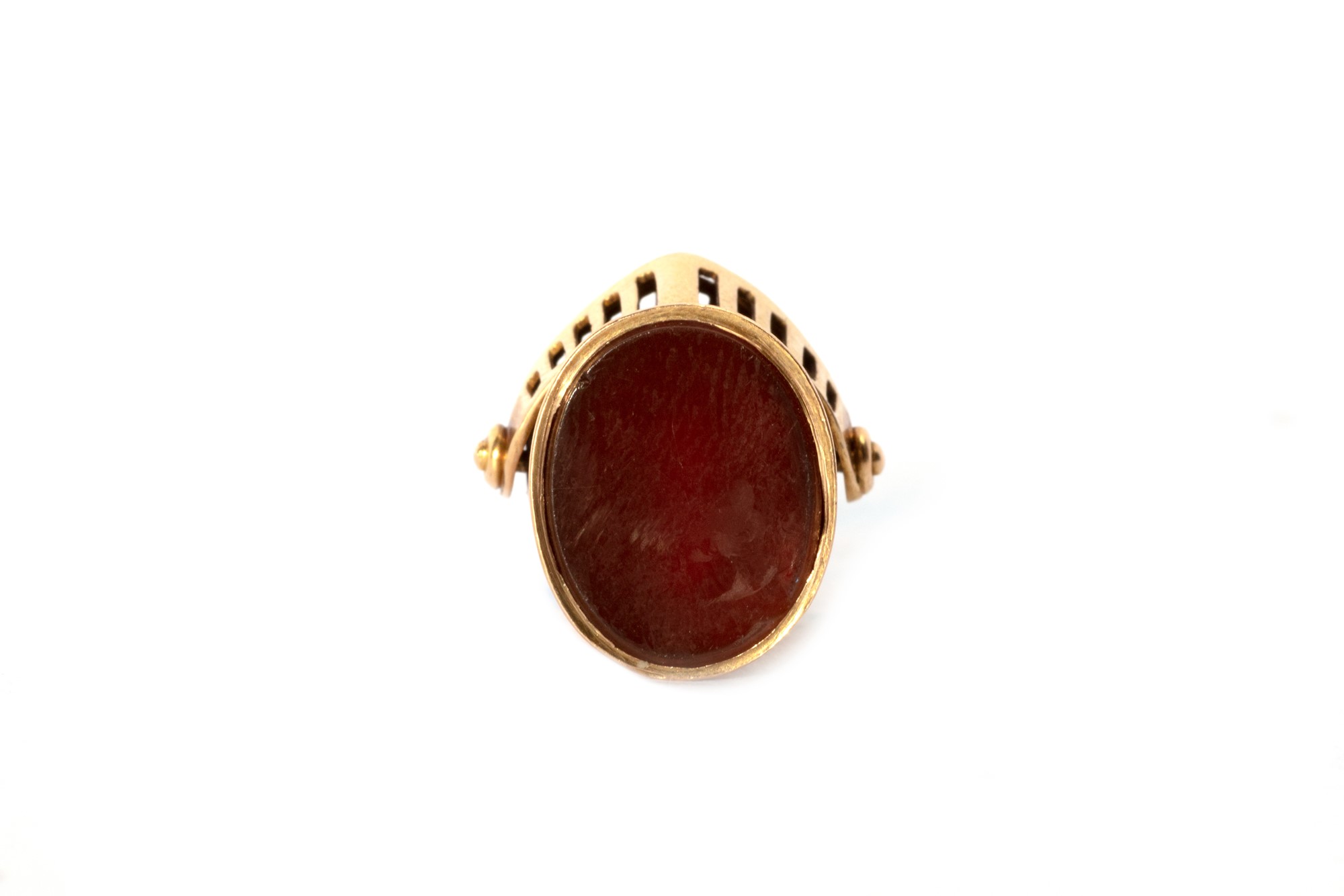 Sigillo in oro con presa a forma di elmo, corniola non incisa, secoli XIX - XX