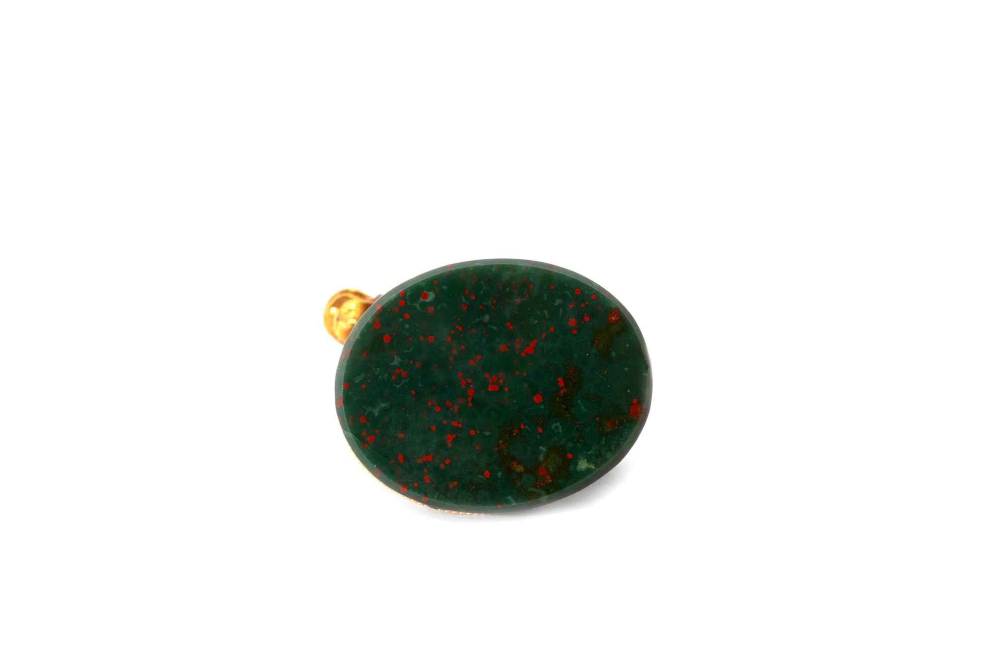 Sigillo in oro con presa a forma di testa di cavallo con occhi con piccoli rubini cabochon, diaspro non inciso, secoli XIX -XX