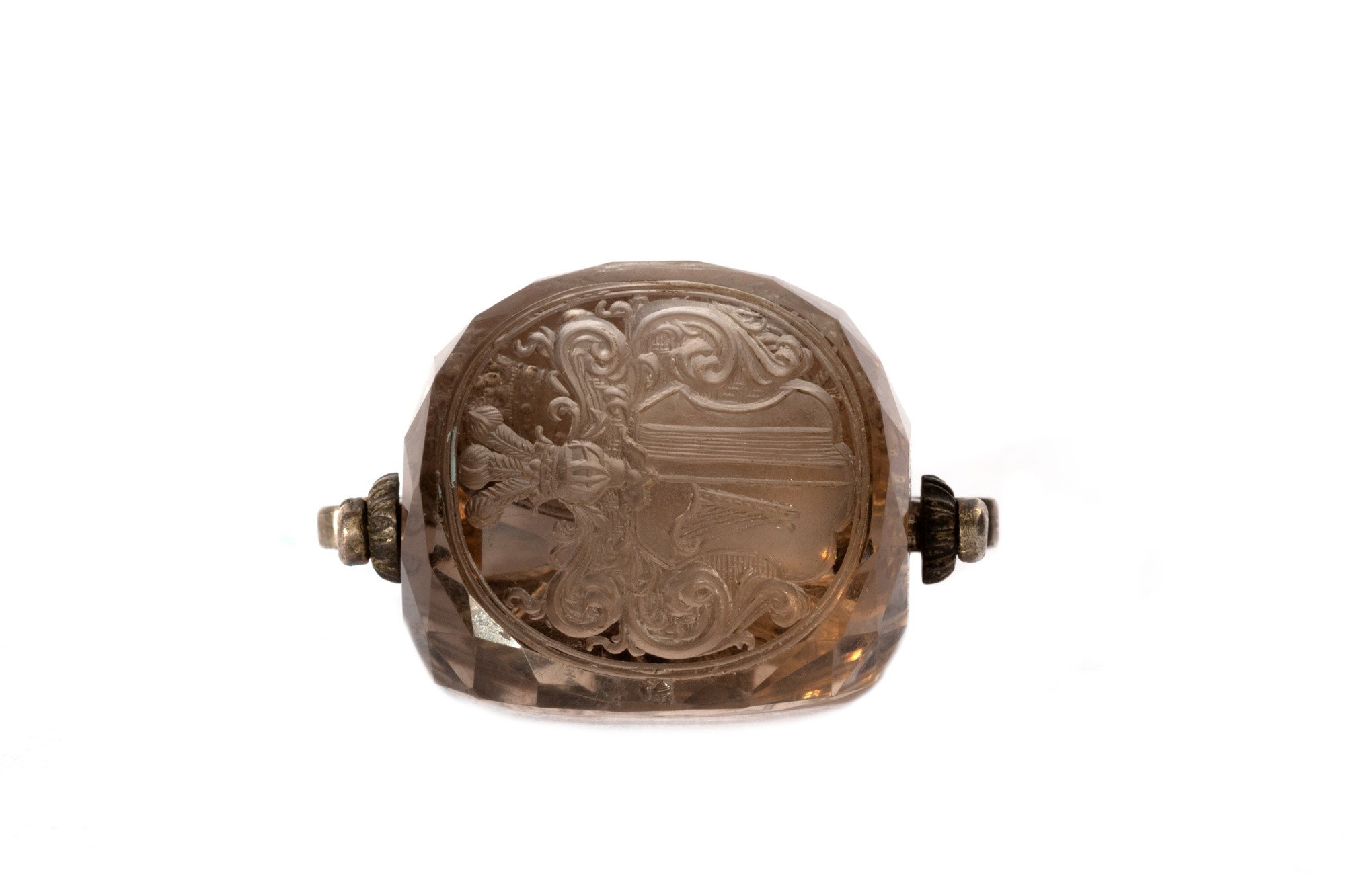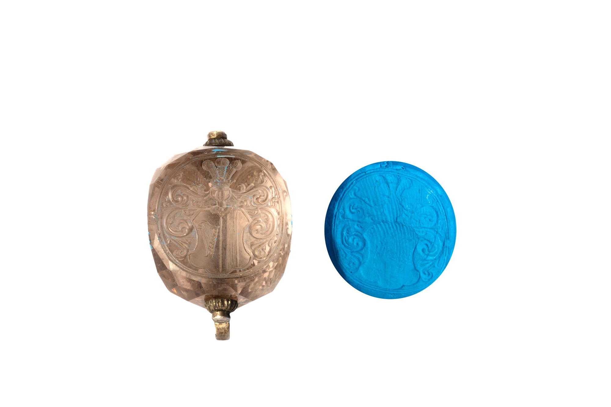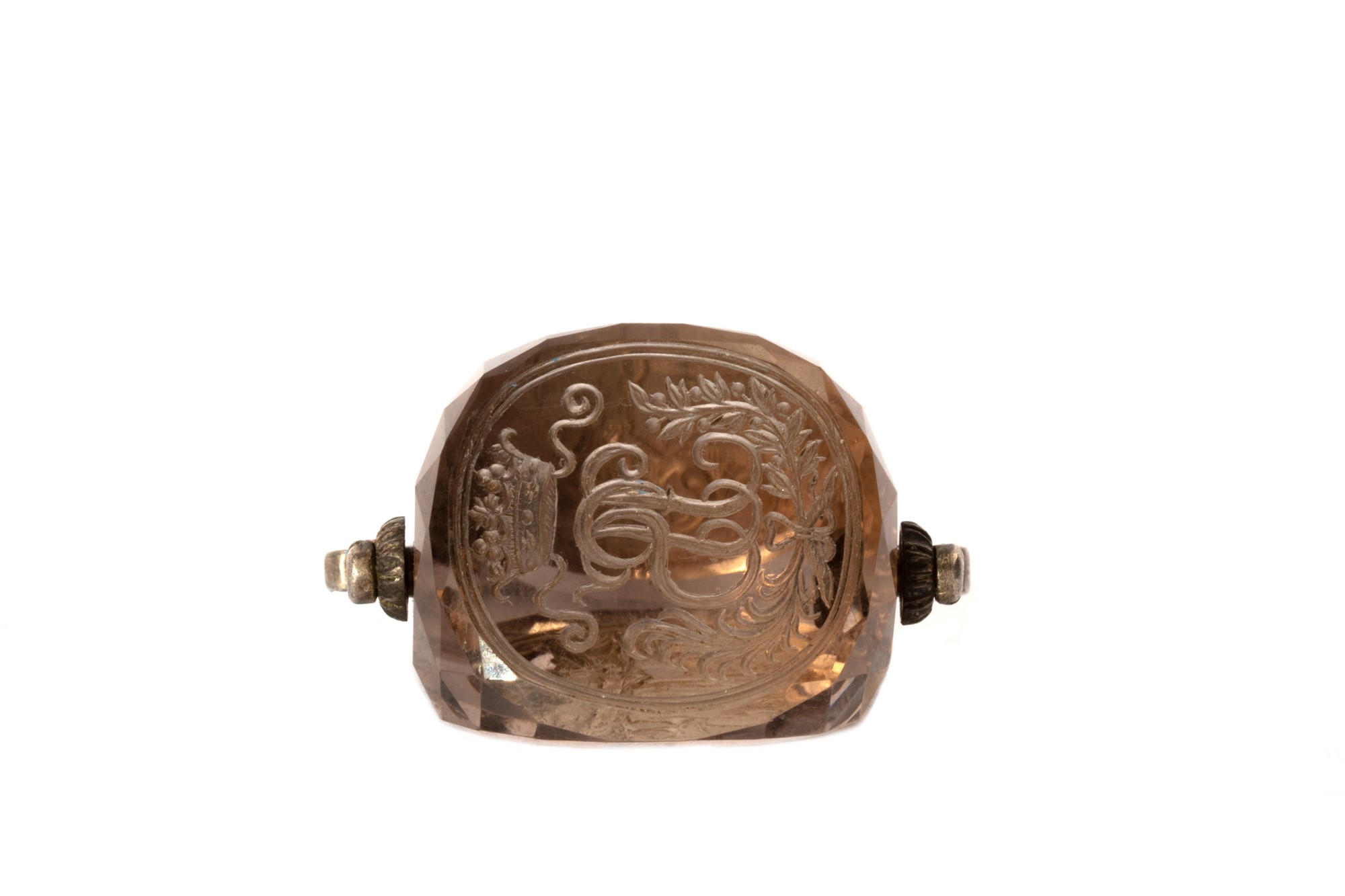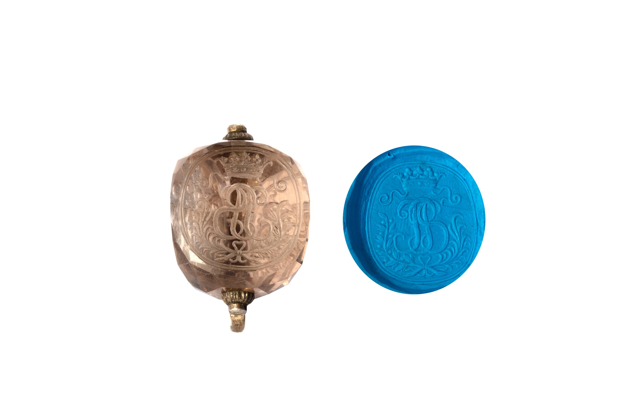 Sigillo multiplo a pendente, in argento e topazio fumé, con stemma nobiliare e monogramma sormontato da corona, secoli XVIII - XIX