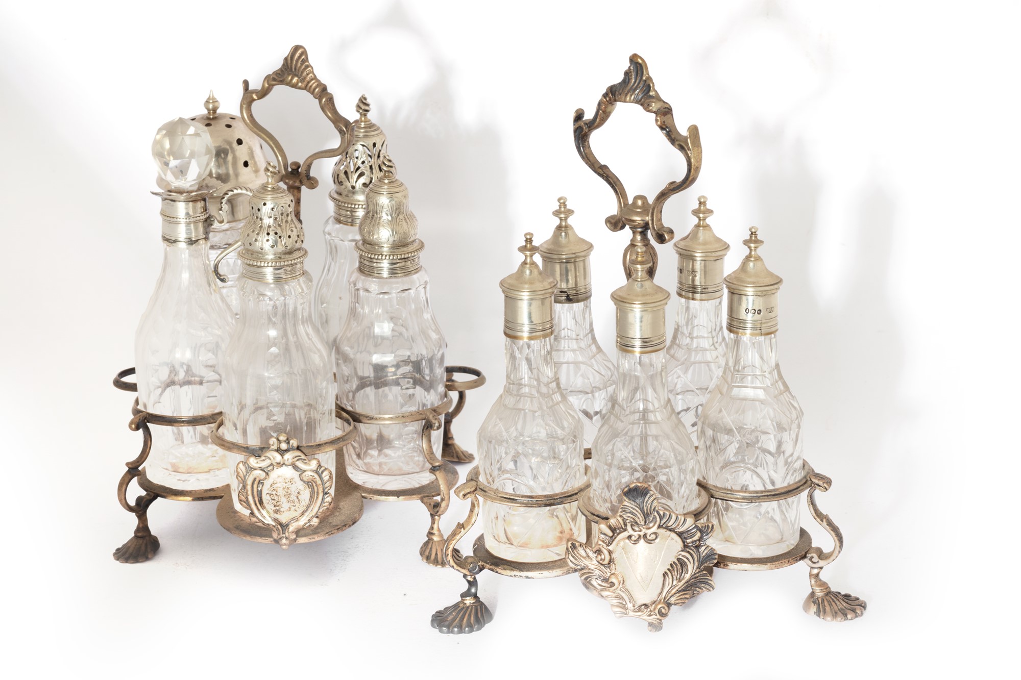 Due oliere in argento con bottiglie in cristallo, Inghilterra secolo XIX