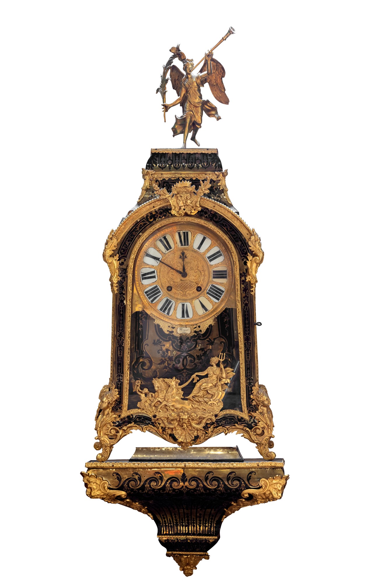 cassa dell'orologio Boulle, ornamenti figurati in bronzo dorato, mensola Boulle.