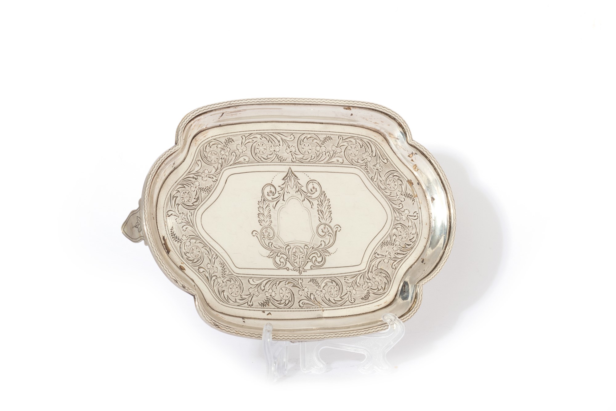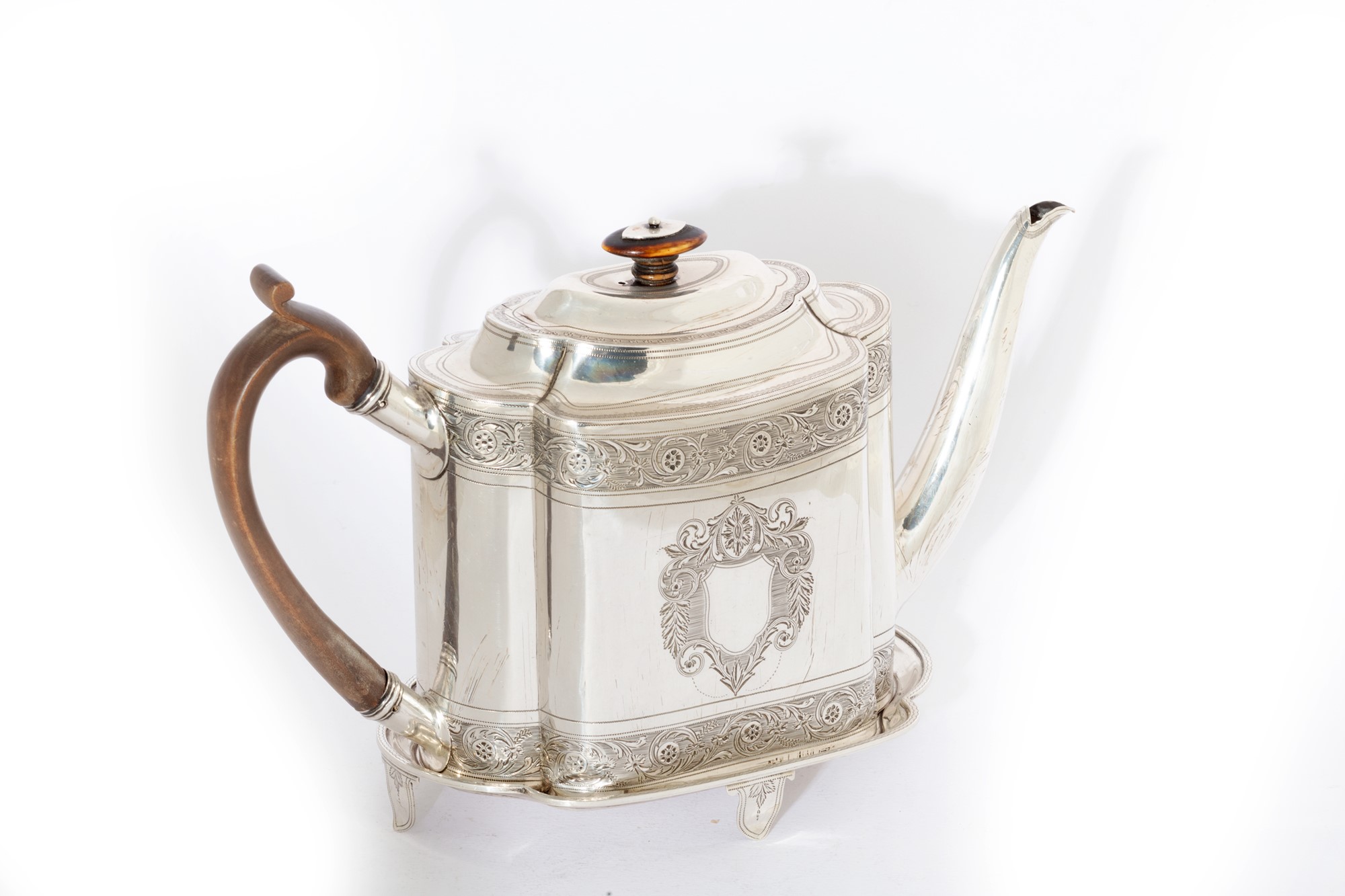 Lotto 750 | Teiera in argento con manico e presa in legno, e piccolo vassoio polilobato, Inghilterra inizi secolo XIX
