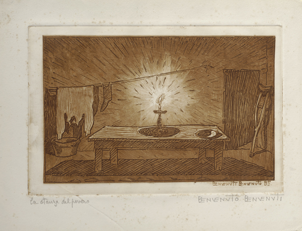 Benvenuto Benvenuti (Livorno, 1881 - 1959) LA STANZA DEL POVERO Acquaforte,...
