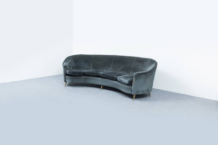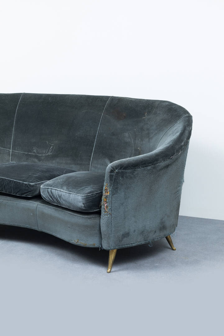 Divano con imbottitura rivestita in velluto, gambe in ottone.