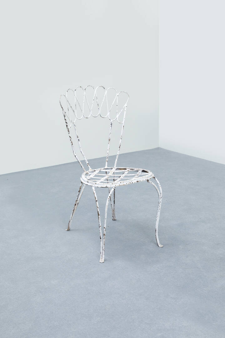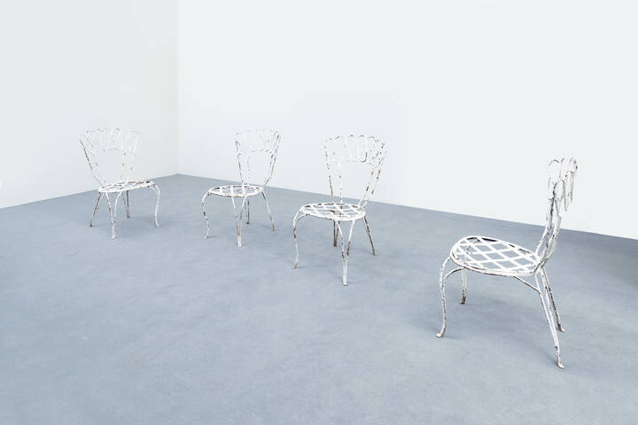 Quattro sedie da giardino in metallo verniciato.