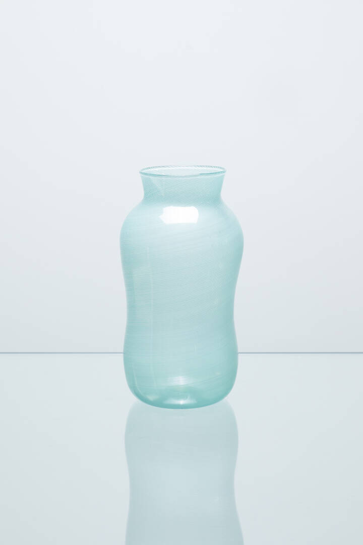 Vaso in vetro lavorato a mezza filigrana.