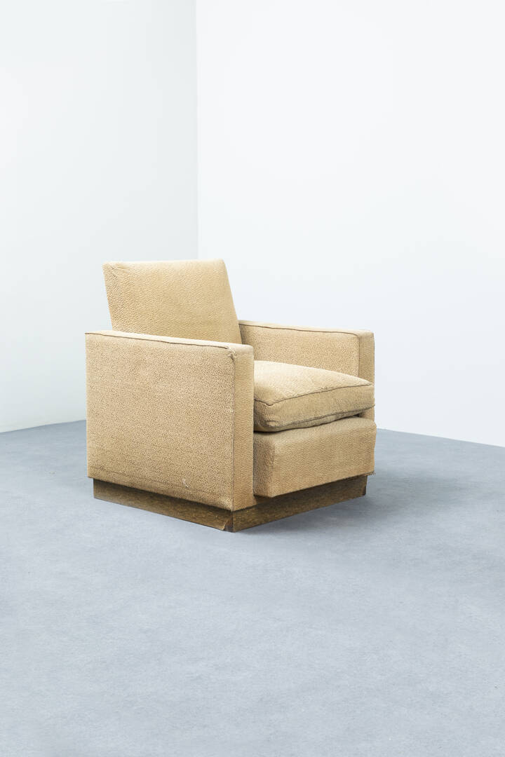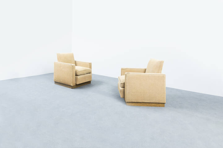 Coppia di poltrone con imbottitura rivestita in tessuto, base in Buxus.