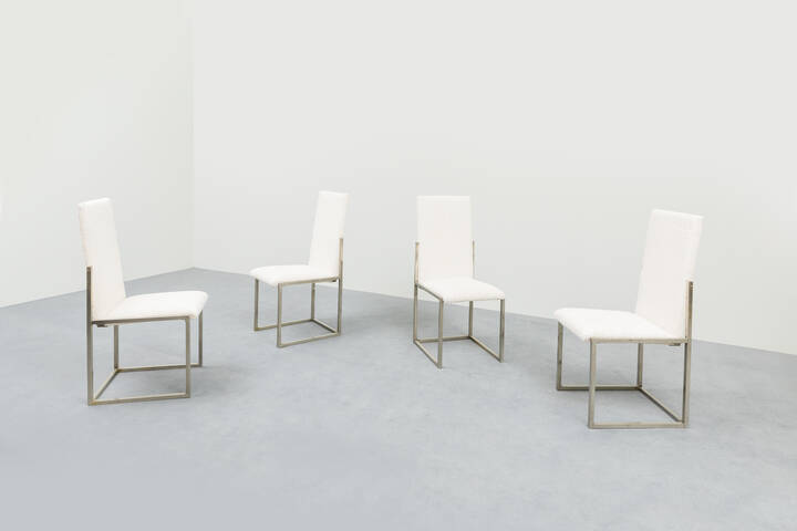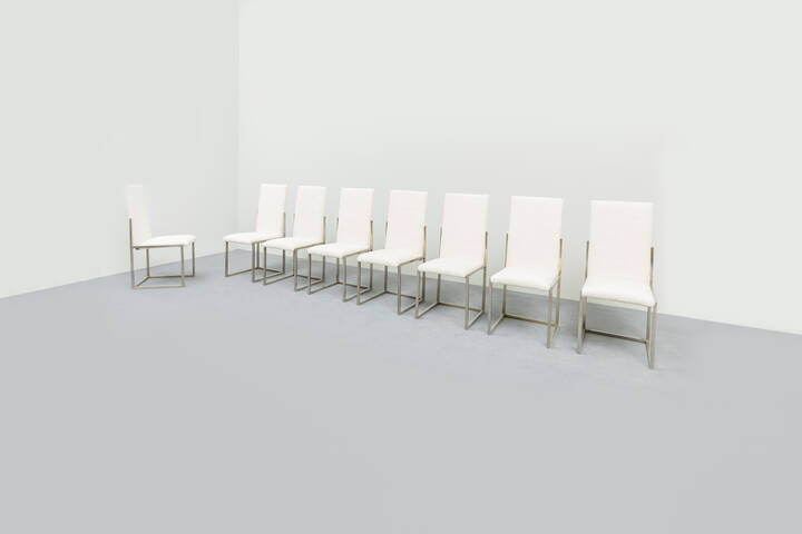 Otto sedie con struttura in metallo, rivestimento in tessuto.