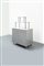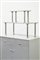 Rivestimento in laminato grigio metallizzato e scanalato, gambe in metallo cromato, piano in