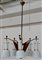 Lampada a sospensione a cinque luci con struttura in ottone, metallo verniciato nero e luci in vetro incamiciato lattimo. Italia, anni '60. (h cm 98; d cm 60) (lievi difetti)