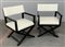 Coppia di poltrone. Italia, produzione recente. Legno di rovere tinto nero, seduta e schienale imbottiti e rivestiti in pelle bianca. (cm 61x84x61) (lievi difetti)
