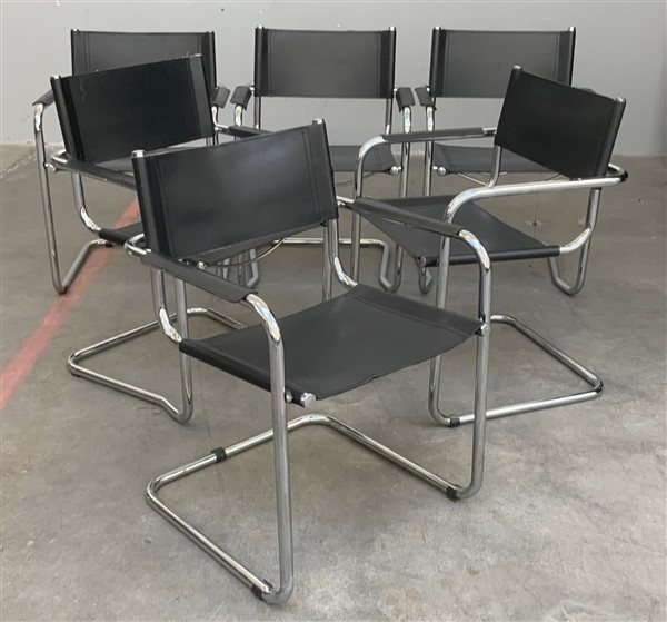 Lotto composto da sei sedie con struttura in tubolare metallico, seduta e schienale in similpelle. Italia, secolo XX. (cm 58x78x53) (difetti)