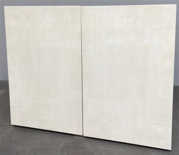 Madia a due ante. Italia, 2009. Conglomerato ligneo verniciato bianco e fronte a effetto graffito. (cm 160x120x46) (lievi difetti)