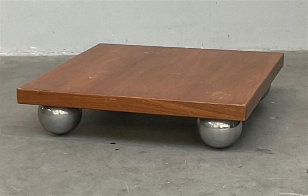 Lotto 845 | Tavolino quadrato in legno impiallacciato con piedini sferici cromati. Italia,