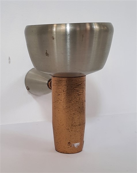 Lampada da parete. Produzione Lumi, Italia, anni '50. Alluminio e ottone. Recante etichetta del produttore. (h cm 15) (lievi difetti)