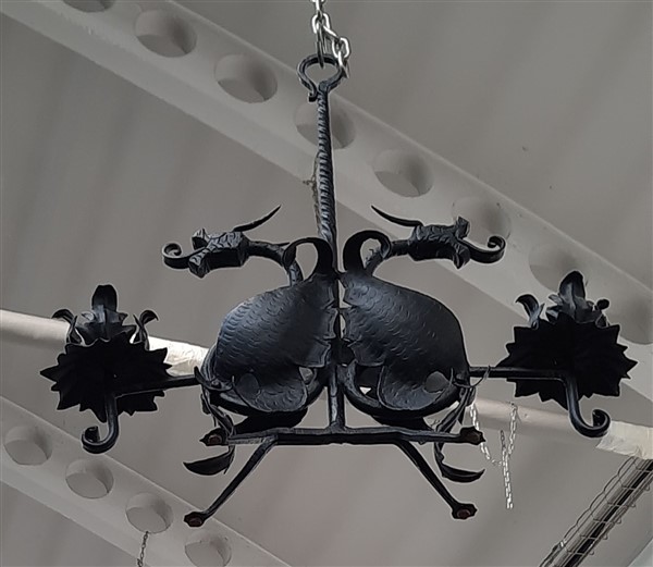 Lotto 898 | Portacandele in ferro battuto lavorato a mano. Italia, secolo XX. (cm 46x47)
