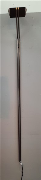 Lampada da parete della serie "Eidos". Produzione Sirrah, Imola, anni '80. Metallo brunito e inserti in fusione di ottone. (h cm 170,5) (lievi difetti e piccole mancanze)