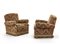 Coppia di poltrone con cuscini asportabili rivestite in tessuto fiammato, passa