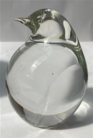 Elio Raffaelli "Pinguino" Scultura in vetro massello trasparente incolore. Itali