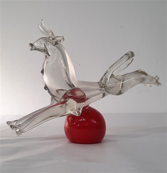 Manifattura di Murano "Ariete" Scultura in vetro massello cristallo. Base sferic
