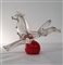 Scultura in vetro massello cristallo. Base sferica in pasta vitrea rossa. Anni '60/'70. (h cm 20,5) (lievi difetti)