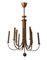 Lampadario a sospensione in ottone a dodici luci, con pendente sferico. Italia,