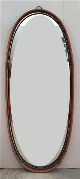 Specchio di forma ovale con cornice in vimini. Italia, anni '50. (cm 167x72)